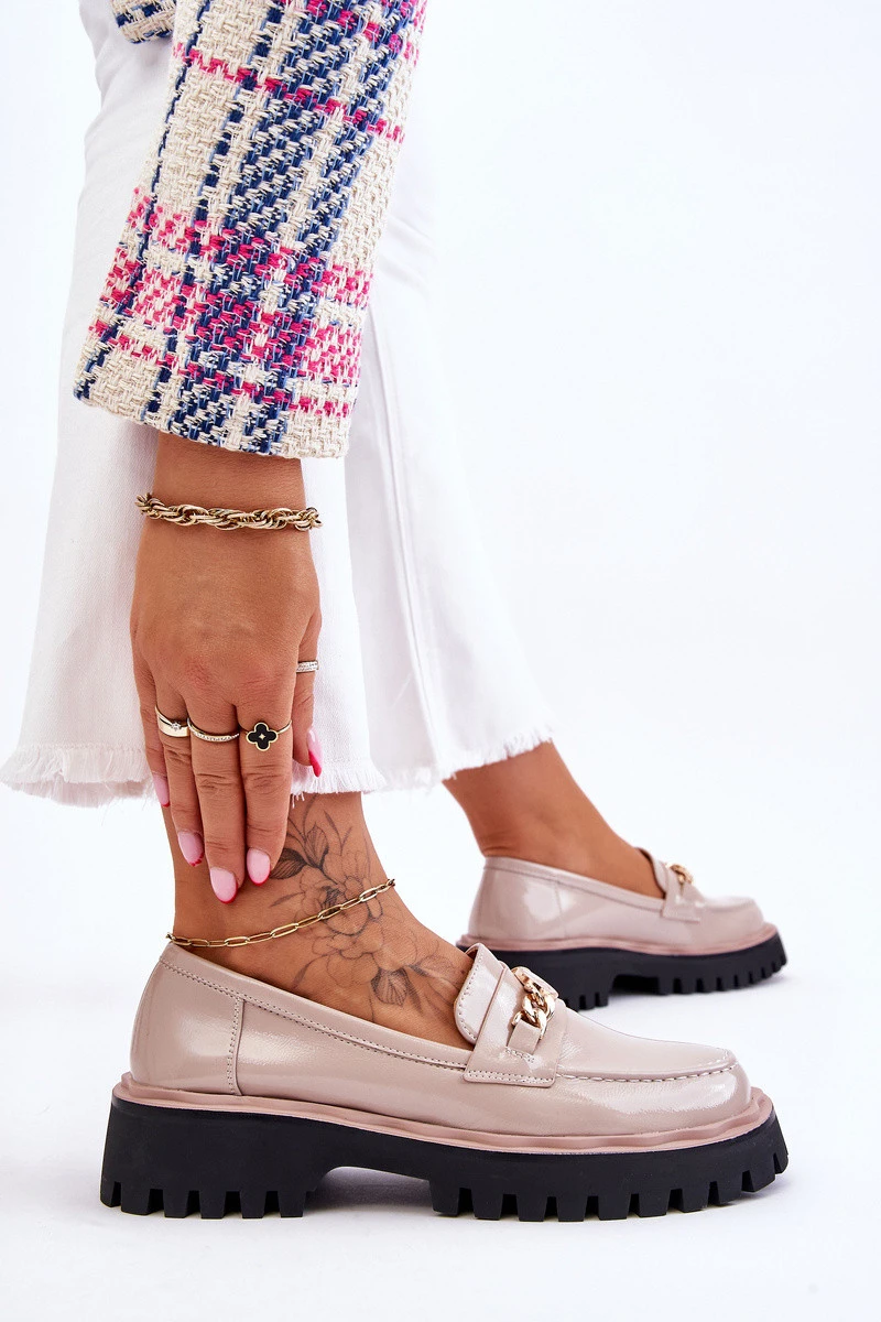 Nádherné mokasíny vyrobené z eko kůže! Tento střih je ideální pro sezónu jaro-podzim. Svršek po kotníky s ozdobným řetízkem vpředu. Podešev je vyrobena z pryžového materiálu s nášlapem. Boty byly umístěny na platformě a plochém podpatku. Měkká, pohodlná stélka je vyrobena z přírodní kůže. Tento model se skvěle hodí jak k ležérním, tak k elegantnějším outfitům! Při výběru velikosti se řiďte tabulkou velikostí.