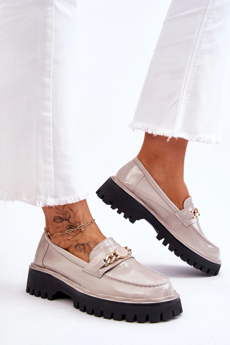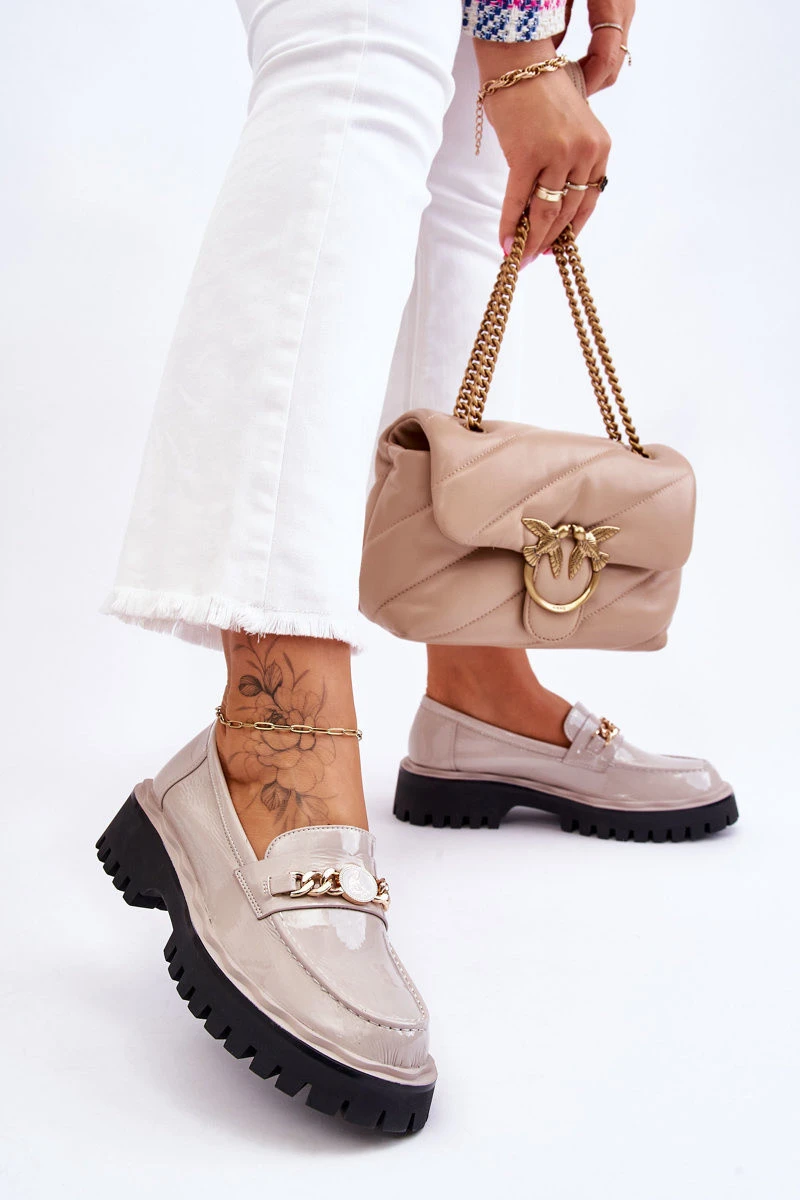 Nádherné mokasíny vyrobené z eko kůže! Tento střih je ideální pro sezónu jaro-podzim. Svršek po kotníky s ozdobným řetízkem vpředu. Podešev je vyrobena z pryžového materiálu s nášlapem. Boty byly umístěny na platformě a plochém podpatku. Měkká, pohodlná stélka je vyrobena z přírodní kůže. Tento model se skvěle hodí jak k ležérním, tak k elegantnějším outfitům! Při výběru velikosti se řiďte tabulkou velikostí.