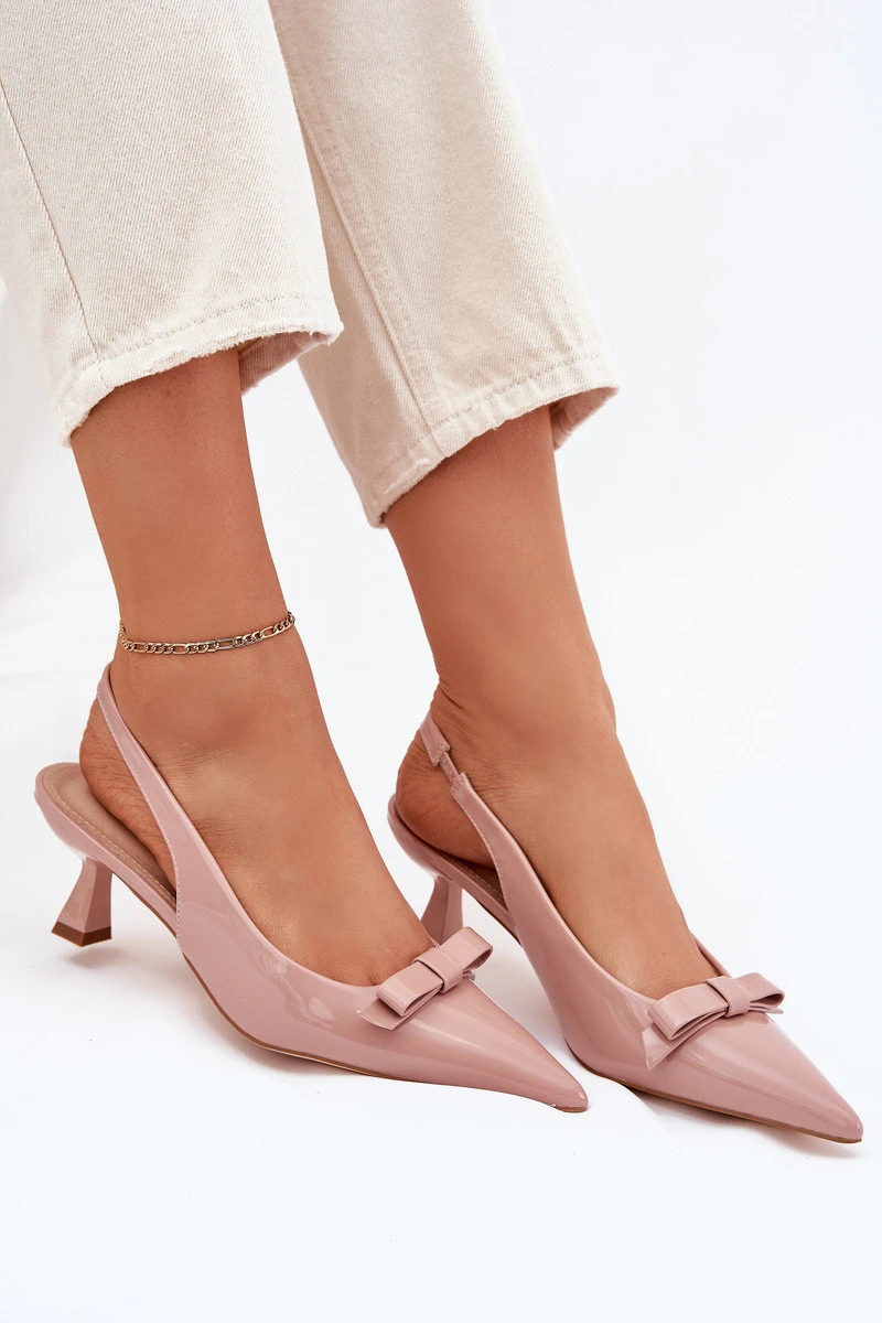 Lakované Sandály Na Jehlovém Podpatku S Mašlí Nude Naylna