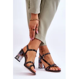 lakované sandály na ozdobném podpatku D&A CR-232 Černe