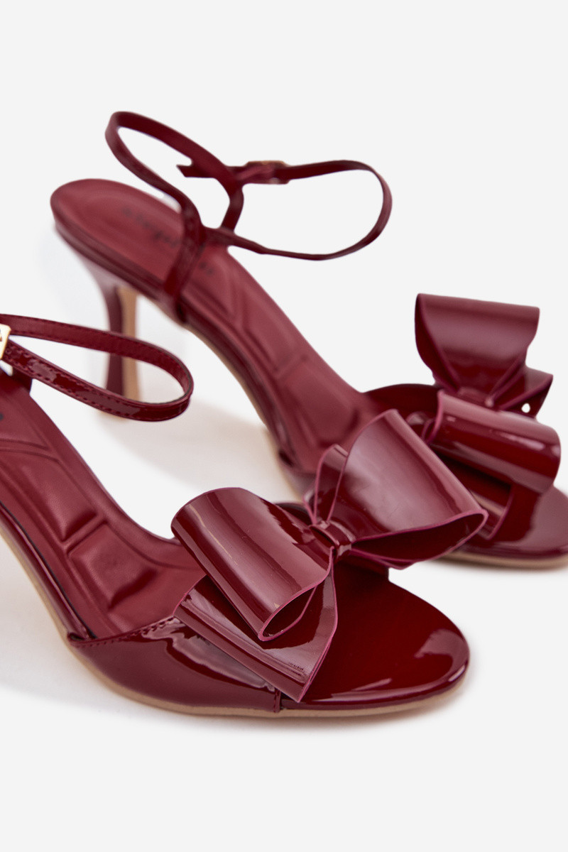 Lakované sandály na podpatku s mašlí Bordó Noliva