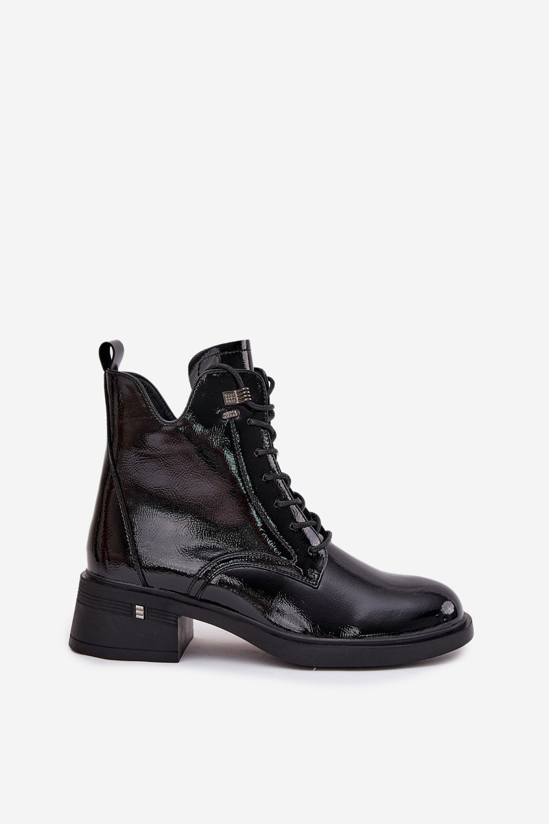 Lakované zateplené dámské boty na platformě Vinceza 58602 černé