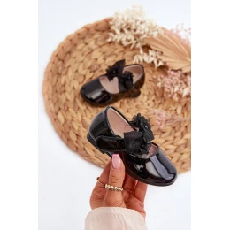 Lakové dětské baleríny na suchý zip s mašlí černé Olessa