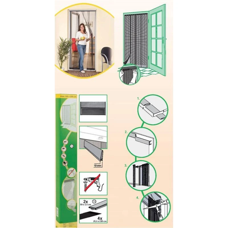 Síť protikomárům do dveří 100X220 CM POLYSTERS + GUMOVÁ PÁSKA je účinným řešením, které chrání před nežádoucím hmyzem a zároveň umožňuje průchod vzduchu. Můžete ji individuálně přizpůsobit výšce dveří jednoduchým nastřižením materiálu a jeho vložením do samosvorné lišty, která se přilepí na rám dveří. Díky upevnění pomocí lepicí pásky ji můžete rychle nainstalovat bez vrtání a šroubování, tj. bez zanechání stop na rámu okna. Výrobek je vyroben z odolné polyesterové síťoviny, která je odolná proti větru a dešti.