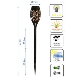 POCHODNIA LAMPA SOLARNA TAŃCZĄCE PŁOMYKI 12 LED SMD 7X7X50CM to praktyczne i niedrogie źródło światła, które sprawdzi się przede wszystkim na zewnątrz.