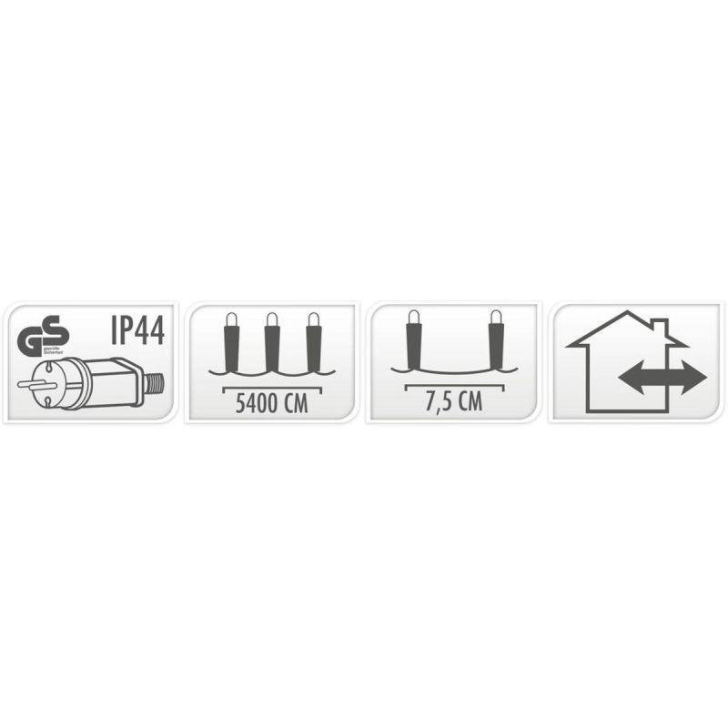 Imponująca liczba światełek bo aż 720 jasnych LEDów, wypełnią każde miejsce jasnym, zimnym białym światłem, tworząc magiczny klimat, a długość łańcucha 5400 cm – wystarczy, aby ozdobić zarówno dom, większe choinki, balustrady czy dekoracje w ogrodzie, tworząc olśniewający efekt.