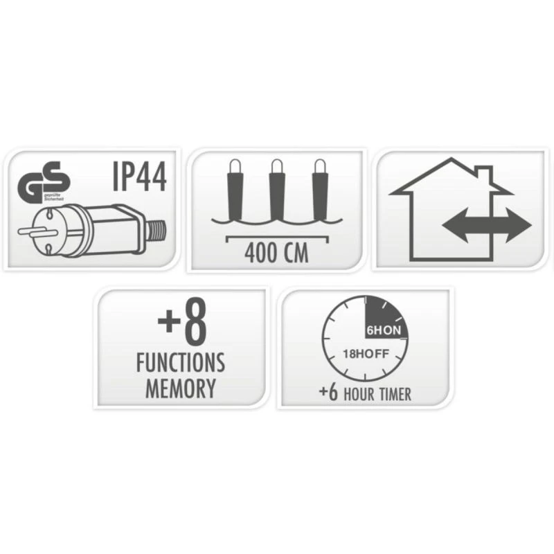 Dzięki funkcji timera 8/16H, oświetlenie samo się włącza na 8 godzin i wyłącza na 16 h – oszczędzasz energię i nie musisz pamiętać o wyłączniku. Idealne do codziennego użytkowania w okresie świątecznym.