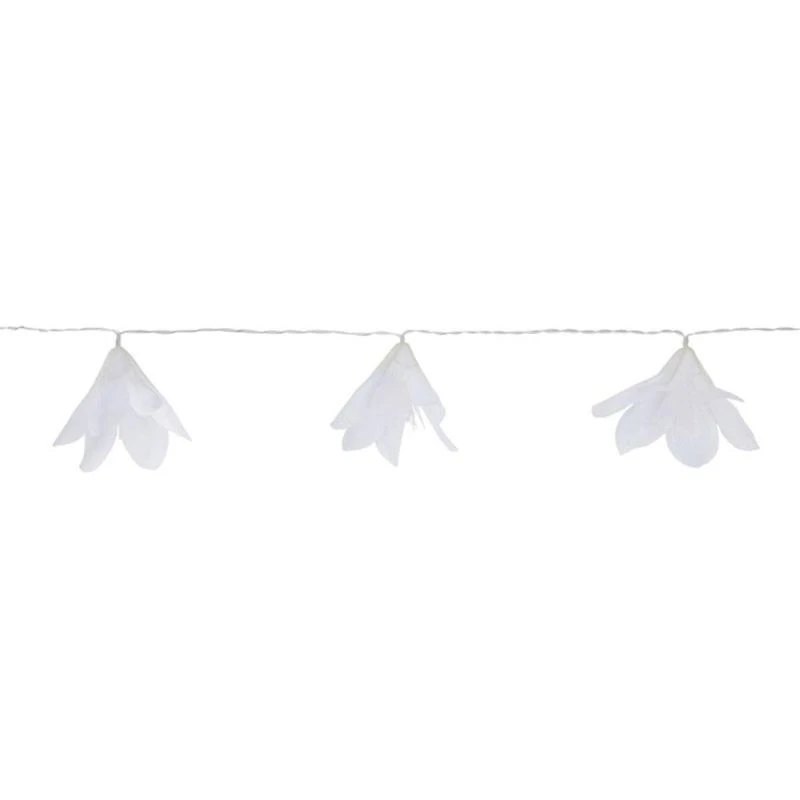 Lampki girlanda z białymi kwiatami przypominającymi kwiat magnolii to niezwykle wszechstronna dekoracja, która doda uroku i przytulności każdemu wnętrzu oraz przestrzeni zewnętrznej. Dzięki ciepłemu białemu światłu i mobilności zasilania na baterie, idealnie nadają się do różnorodnych zastosowań.