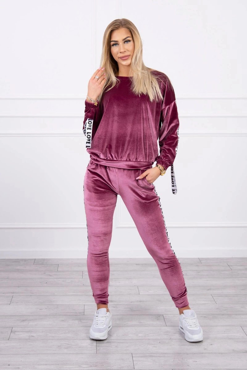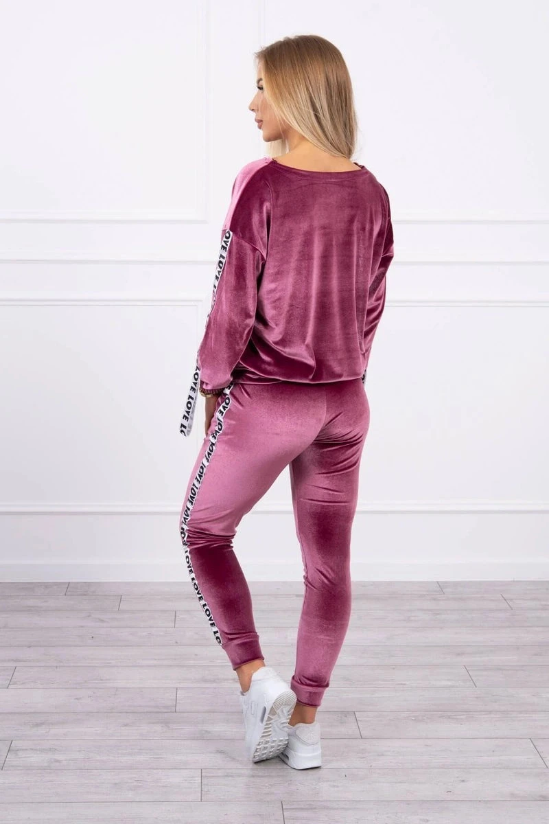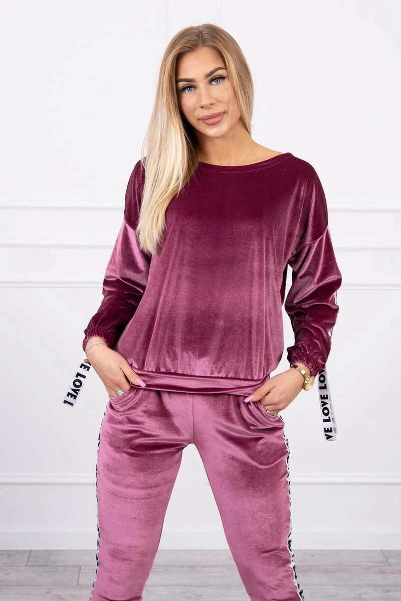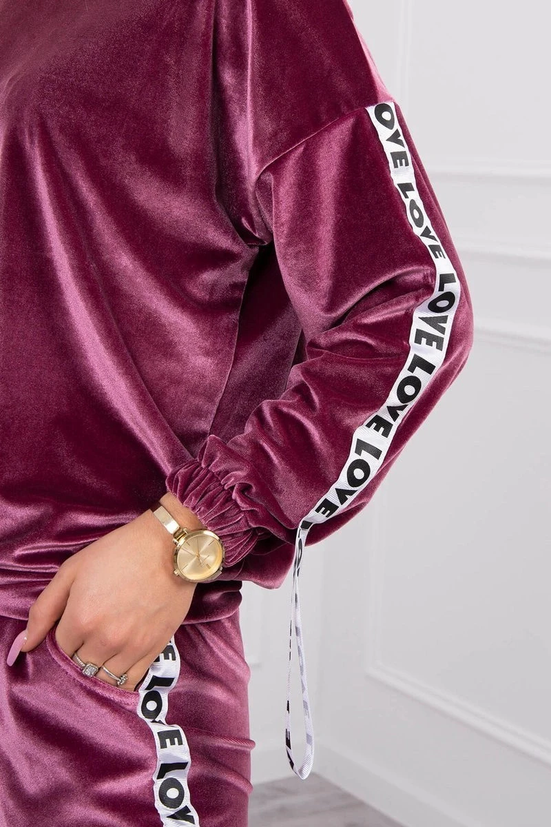 Představujeme vám sadu mikiny a kalhot. Sada z veluru. Mikina má stuhy s nápisem Love. Kalhoty s kapsami a zavazováním v pase. Velmi módní a stylová sada. Sada je vyrobena z vysoce kvalitního materiálu. Velikost je univerzální a vyhovuje dámám velikosti S, M nebo L.