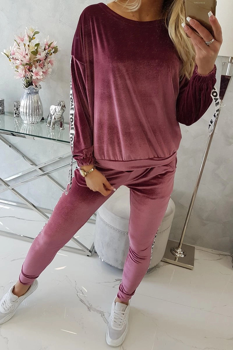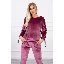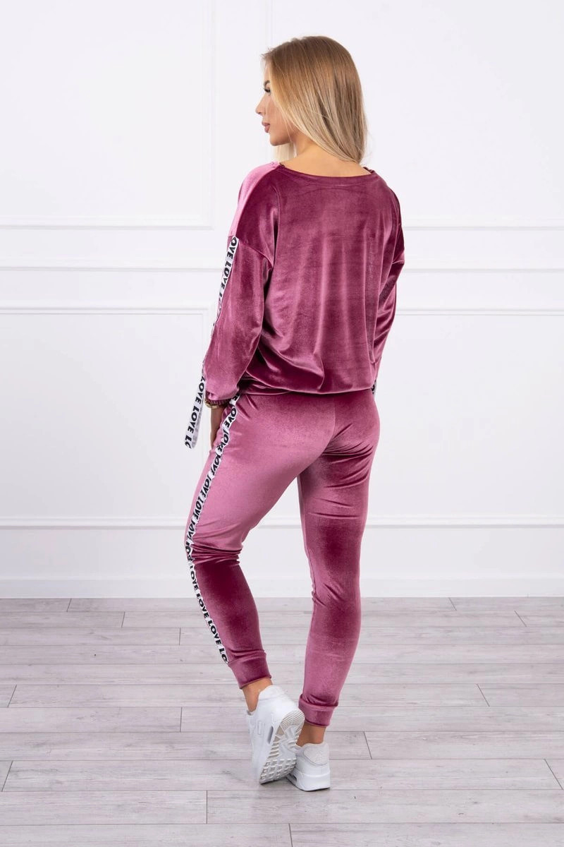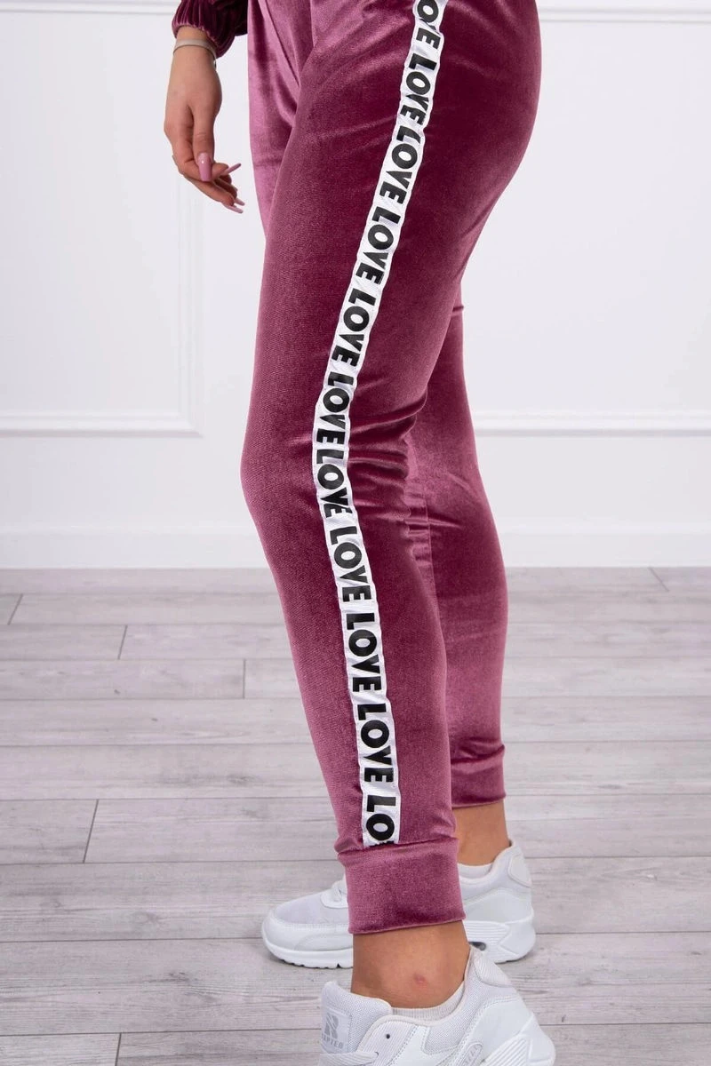 Představujeme vám sadu mikiny a kalhot. Sada z veluru. Mikina má stuhy s nápisem Love. Kalhoty s kapsami a zavazováním v pase. Velmi módní a stylová sada. Sada je vyrobena z vysoce kvalitního materiálu. Velikost je univerzální a vyhovuje dámám velikosti S, M nebo L.