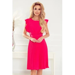 LAYLA - Dámské plisované šaty v malinové barvě s opaskem 396-2