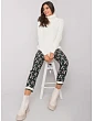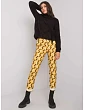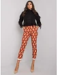 Kalhoty z černé a zelené vzorované látky.
