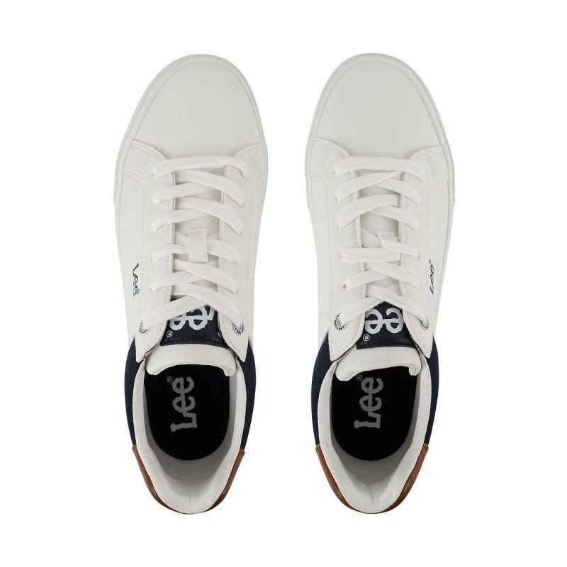 Pánská obuv Lee Brixton bílá 50261024 1FG Pánská obuv Lee kombinuje minimalistický design s každodenním pohodlím. Svršek ze syntetické kůže se snadno čistí a šněrování se dvěma kovovými průchodkami zajišťuje stabilitu nohy. Syntetický vnitřek. Měkká stélka. Gumová podrážka se postará o trakci.