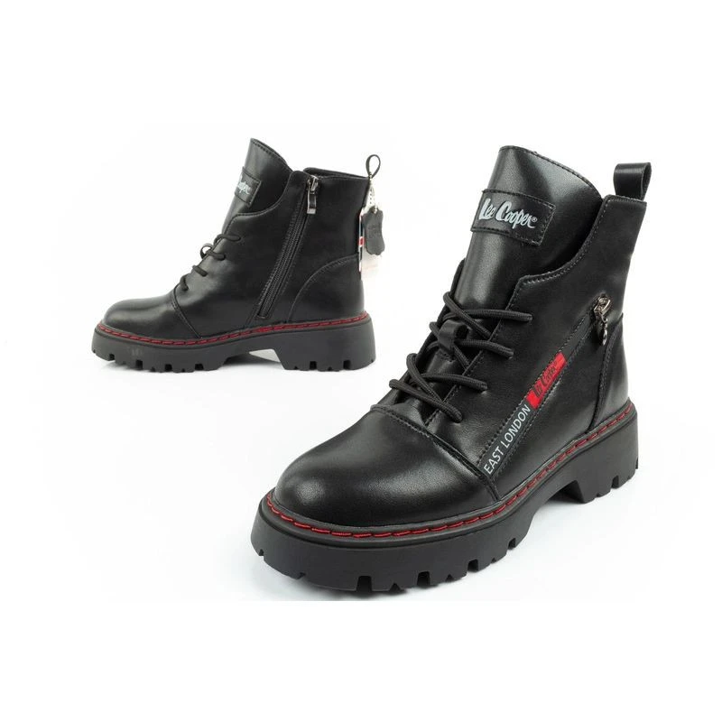 Lee Cooper buty botki trapery damskie sztyblety skórzane ocieplane czarne czerwone