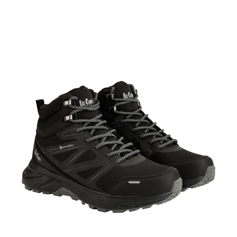 Dámská obuv Lee Cooper černá LCJ-25-01-3710LA Dámská obuv Lee Cooper pro každodenní aktivity. Prodloužený syntetický svršek s textilními vsadkami. Klasické šněrování s přídavnými háčky. Technologie Aqua Shell podporuje ochranu proti větru, snižuje odvod vlhkosti a pomáhá udržovat optimální úroveň tepla. Měkká podšívka. Grip na patě. Podešev s přilnavým vzorkem. Reflexní detaily.