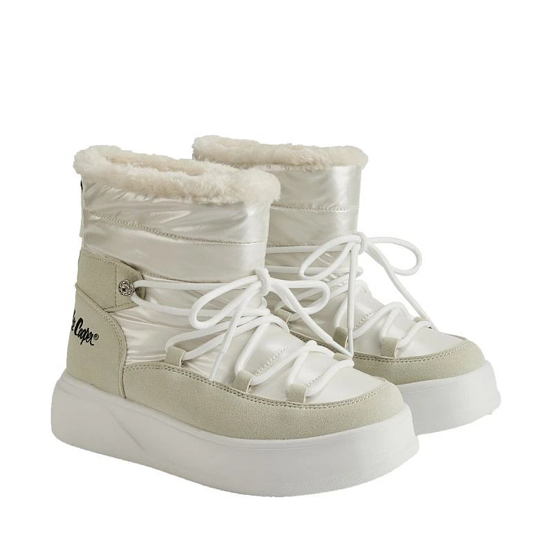 Dámské kozačky Lee Cooper bílé LCJ-25-03-3815LA Dámské kozačky Lee Cooper se budou dobře hodit na zimní sezónu. Textilní svršek se syntetickými výztuhami a dvojitým prošíváním. Konstrukce uprostřed. Měkký interiér s textilní kožešinovou podšívkou. Měkká stélka. Zip v zadní části. Gumová podrážka s trakčním vzorkem.