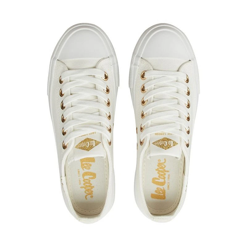 Dámské boty Lee Cooper bílé LCW-26-31-4369LA Dámské boty Lee Cooper se budou hodit na každodenní nošení. Textilní svršek s plátěnou strukturou. Gumové zpevnění v oblasti špičky. Klasické šněrování s kovovými průchodkami. Měkká stélka. Zvýšená gumová podrážka.