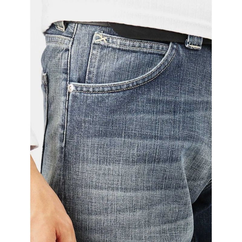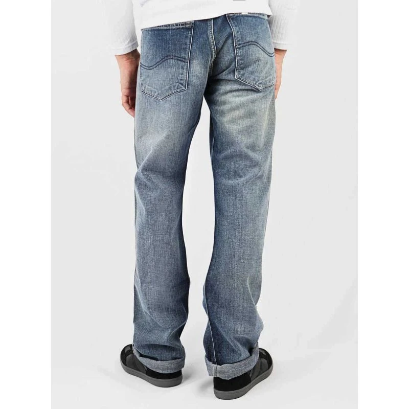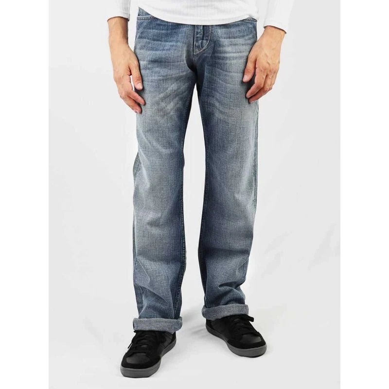 Pánské džínové kalhoty s rozšířenými nohavicemi a nízkým sedem, zapínání na zip, nášivka s logem výrobce na zadním pásu.