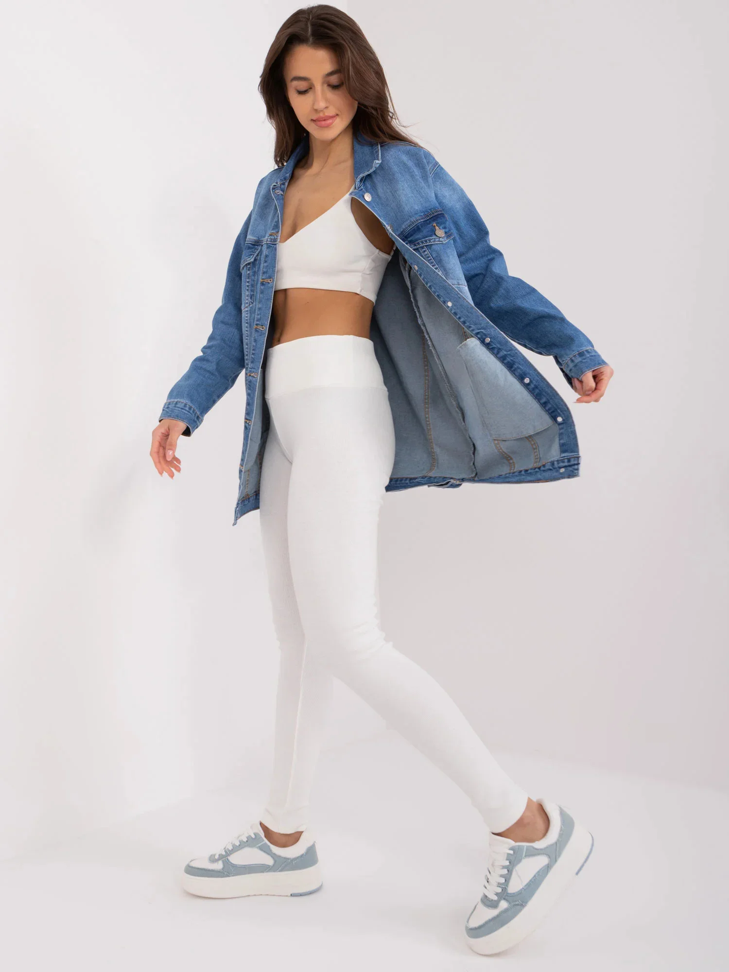 Modelka ma na sobie rozmiar one size. Wymiary modelki: wzrost 172 cm, biust 88 cm, talia 63 cm, biodra 92 cm.