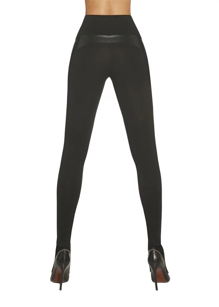 Legíny elastické z tkaniny Squeeze + ECO kůže. Výsledkem je PUSH UP efekt, vyzdvihnou hýždě, stáhne pas, zeštíhlí nohy.
