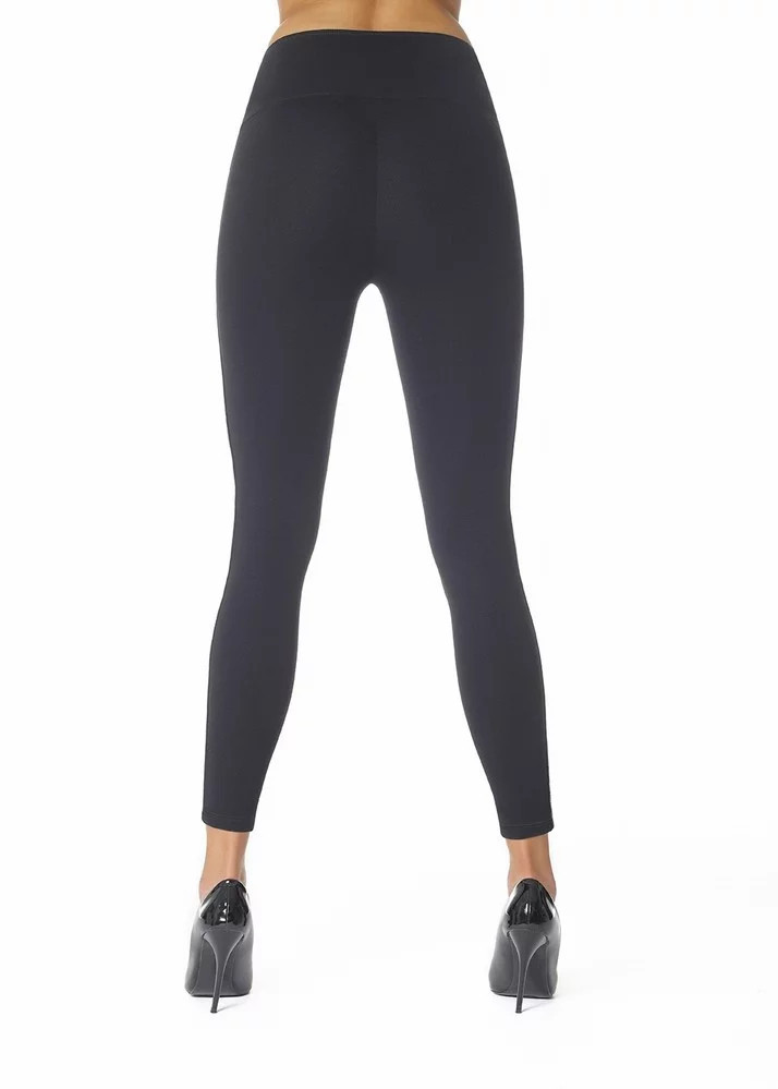Legíny jsou vyrobeny z elastického materiálu. SQUEEZE materiál je zcela neprůhledný, flexibilní, pevně tvarující a zeštíhlující účinek, zvedání hýždě a stahuje pas (PUSH UP). V bocích je všitý efektní stříbrný pásek.
