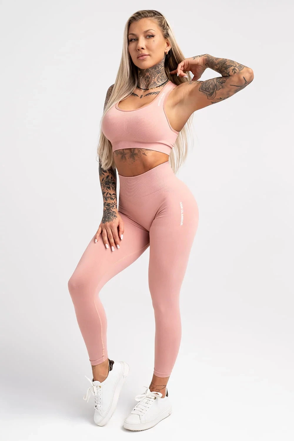 Kolekce 2022 Less Is More Bezešvé kompresní legíny. Legíny maskují nedokonalosti, skvěle se hodí pro každý typ postavy. Jak pro svalnaté ženy, tak pro ty, které necvičí. Materiál je silný, pružný a masitý. Jedná se o výrobek s nejsilnějším materiálem v naší nabídce. Hodně stahuje a tvaruje siluetu a zároveň netlačí a nezpůsobuje nepohodlí při intenzivním cvičení. Pás je pevný a stabilní. Dokonale drží břicho, zužuje pas a poskytuje pohodlí při cvičení. Nové logo - nápis Gym Glamour na boku, vyrobený z vylepšené fólie. Neprůhledné. Ani při náročném tréninku nejsou vidět stopy potu. nezůstavají na nich žádné pyly, vlasy apod. Ideální nejen na trénink, ale i na každodenní nošení. Skrytý, malý klín (vložka v rozkroku).