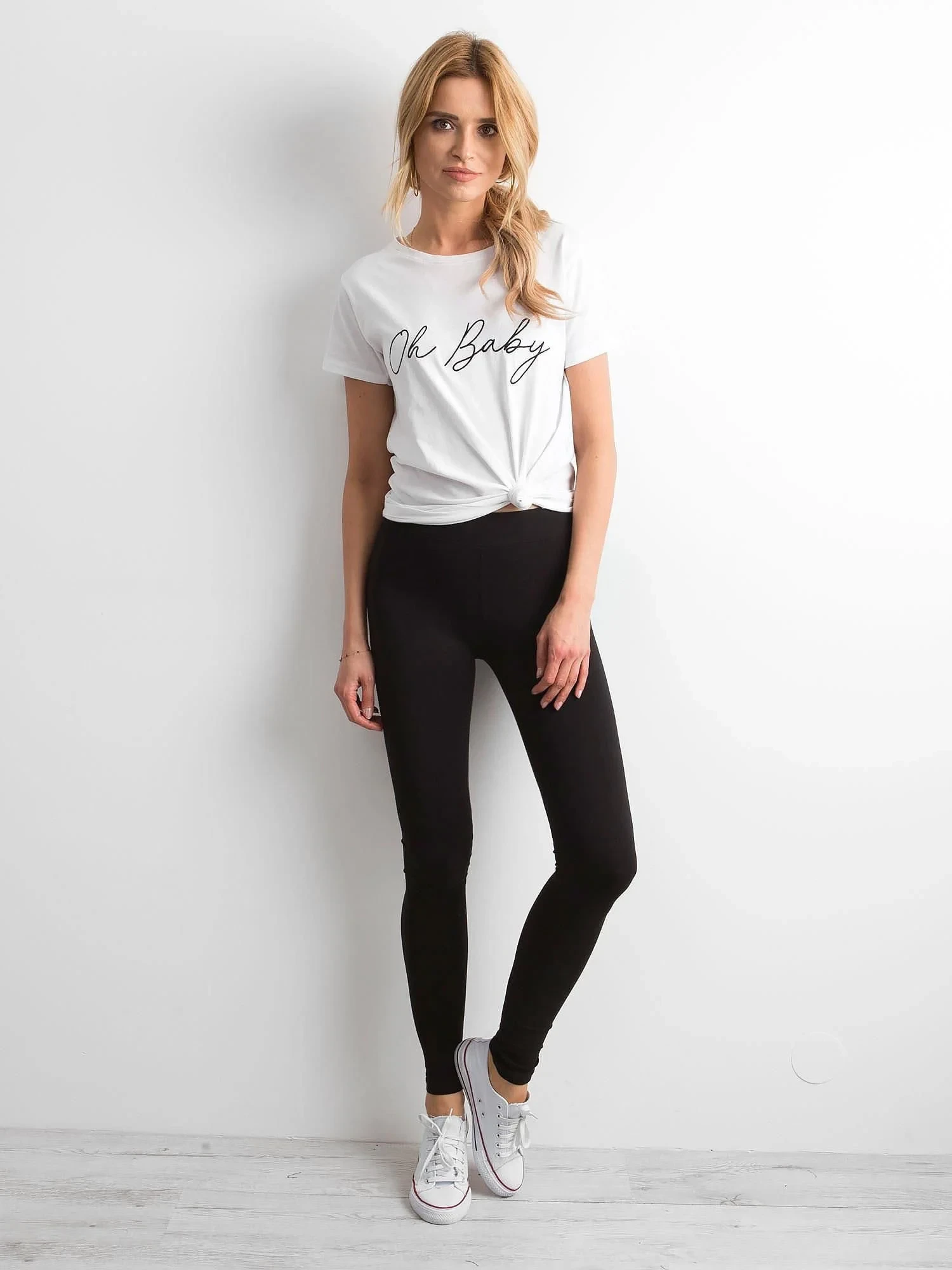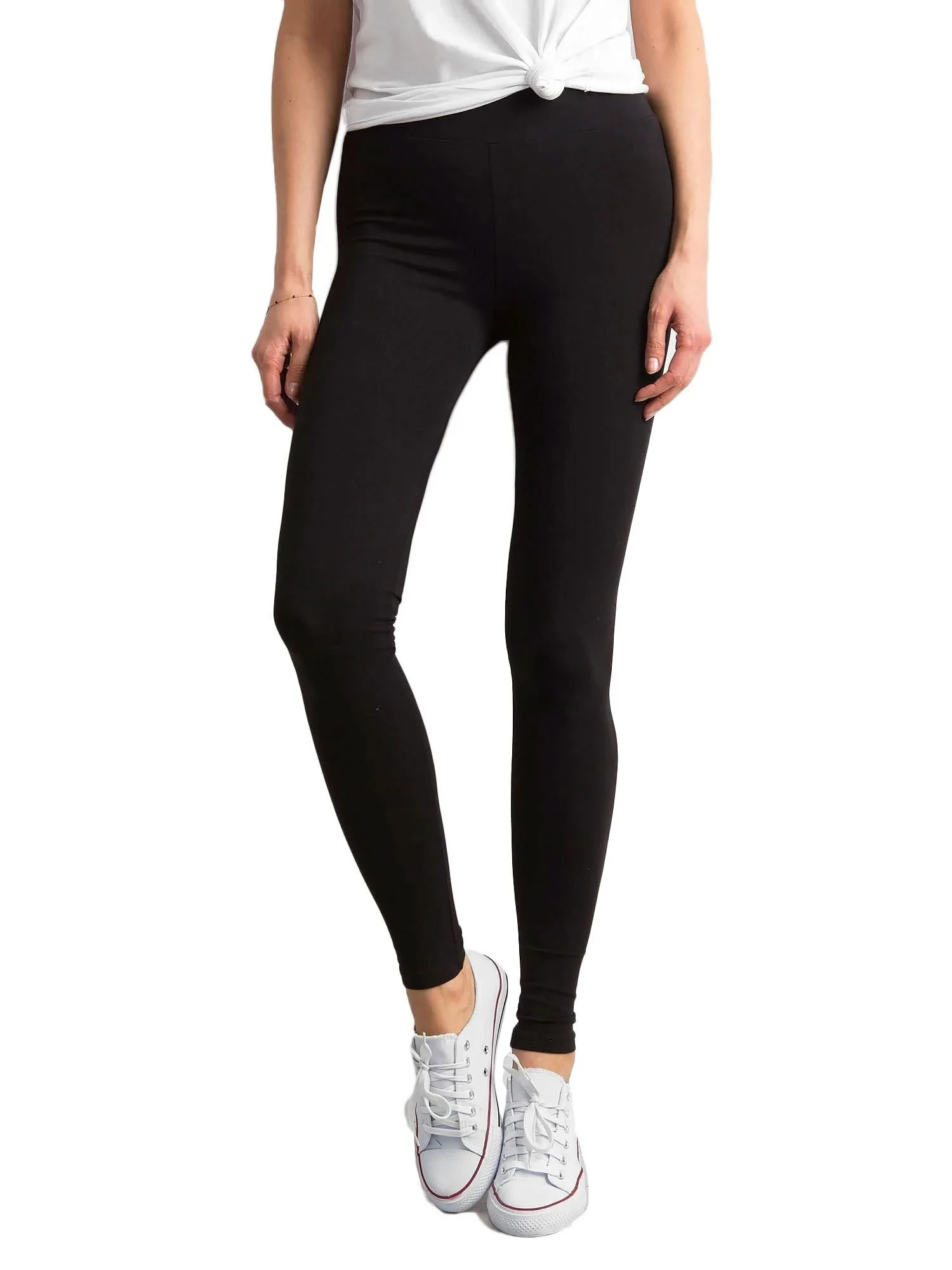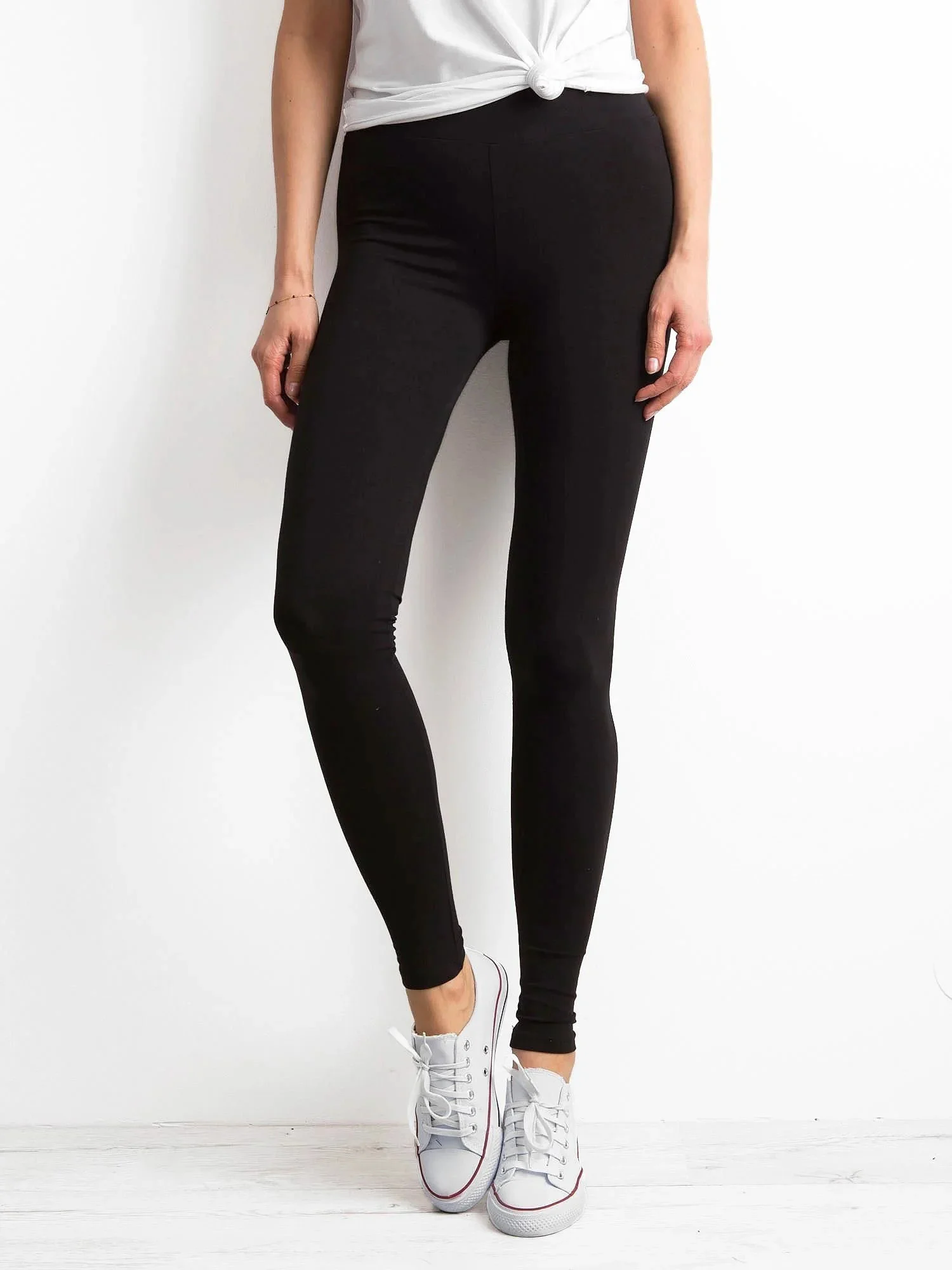 Te dopasowane spodnie to modowy klasyk, którego nigdy nie powinno zabraknąć w Twojej codziennej garderobie. Czarne legginsy basic są niezwykle uniwersalne i pasują dosłownie do wszystkiego! Gładki model dostępny w sprzedaży internetowej podkreśla atuty sylwetki bez nadmiernego jej opinania. Możesz po niego sięgać, kiedy nie wiesz, co założyć do pracy czy na miasto. Legginsy basic przydadzą się na siłowni oraz podczas weekendowego wypadu za miasto. W najbardziej klasycznej wersji zestawiaj je z t-shirtem z ciekawym nadrukiem oraz sneakersami. Jeśli zależy Ci stylizacji w bardziej kobiecym stylu, dołącz do naszych legginsów koszulę w ciekawe wzory, np. kratę czy kwiaty. Do tego dobierz trencz oraz buty na obcasie. Chcesz czuć się stylowo na treningu? Czarne legginsy basic noś do staników i topów sportowych. W chłodniejsze dni nie zapomnij zabrać ze sobą bluzy z kapturem.