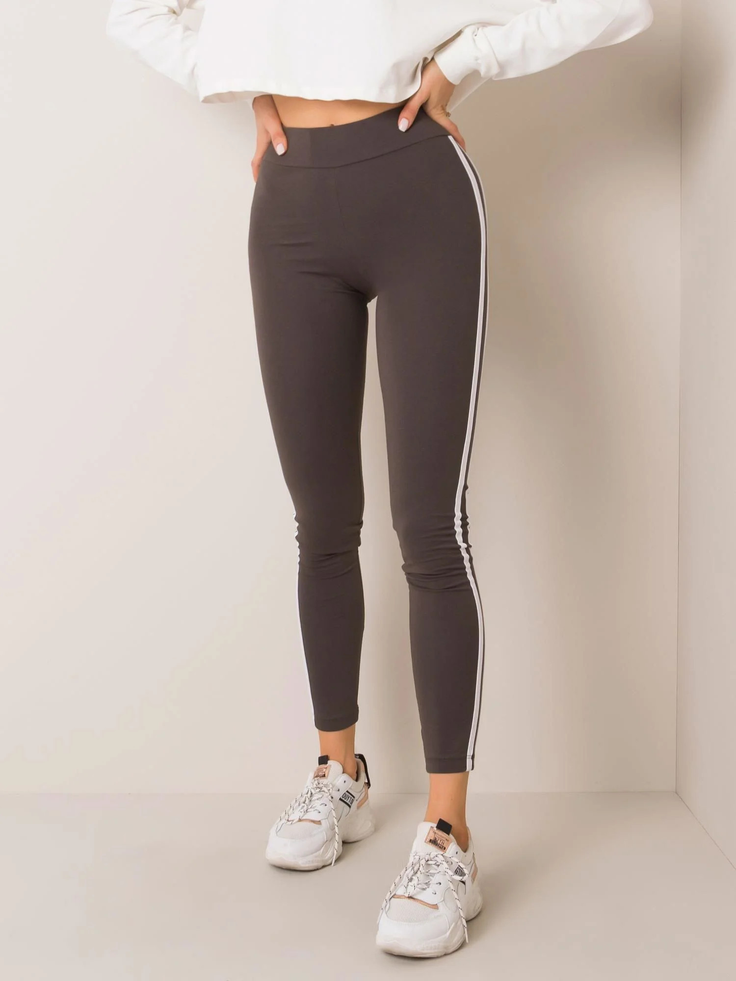 Hladké khaki dámské legíny.