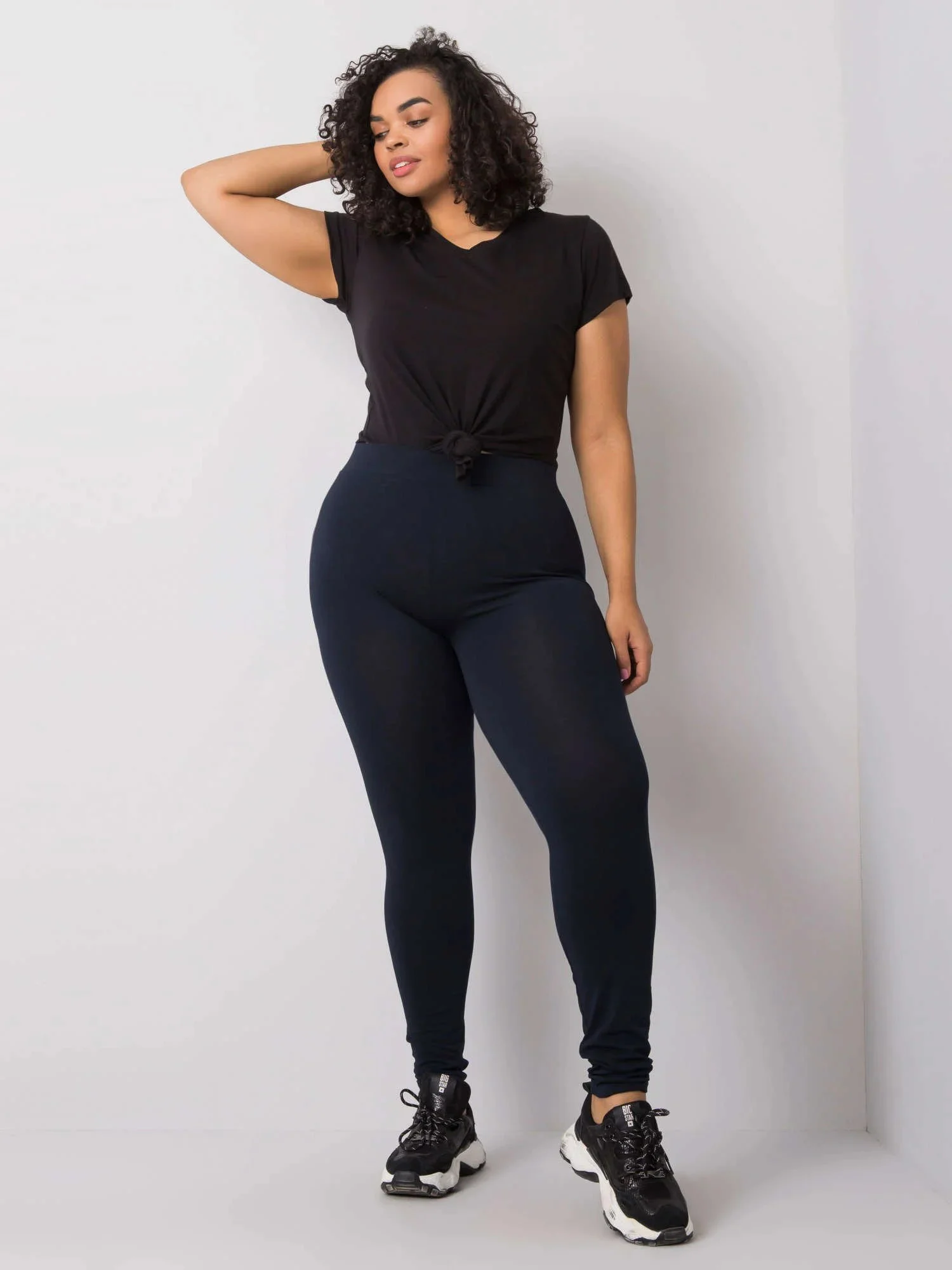 Námořnická modrá bavlna plus velikost legíny.