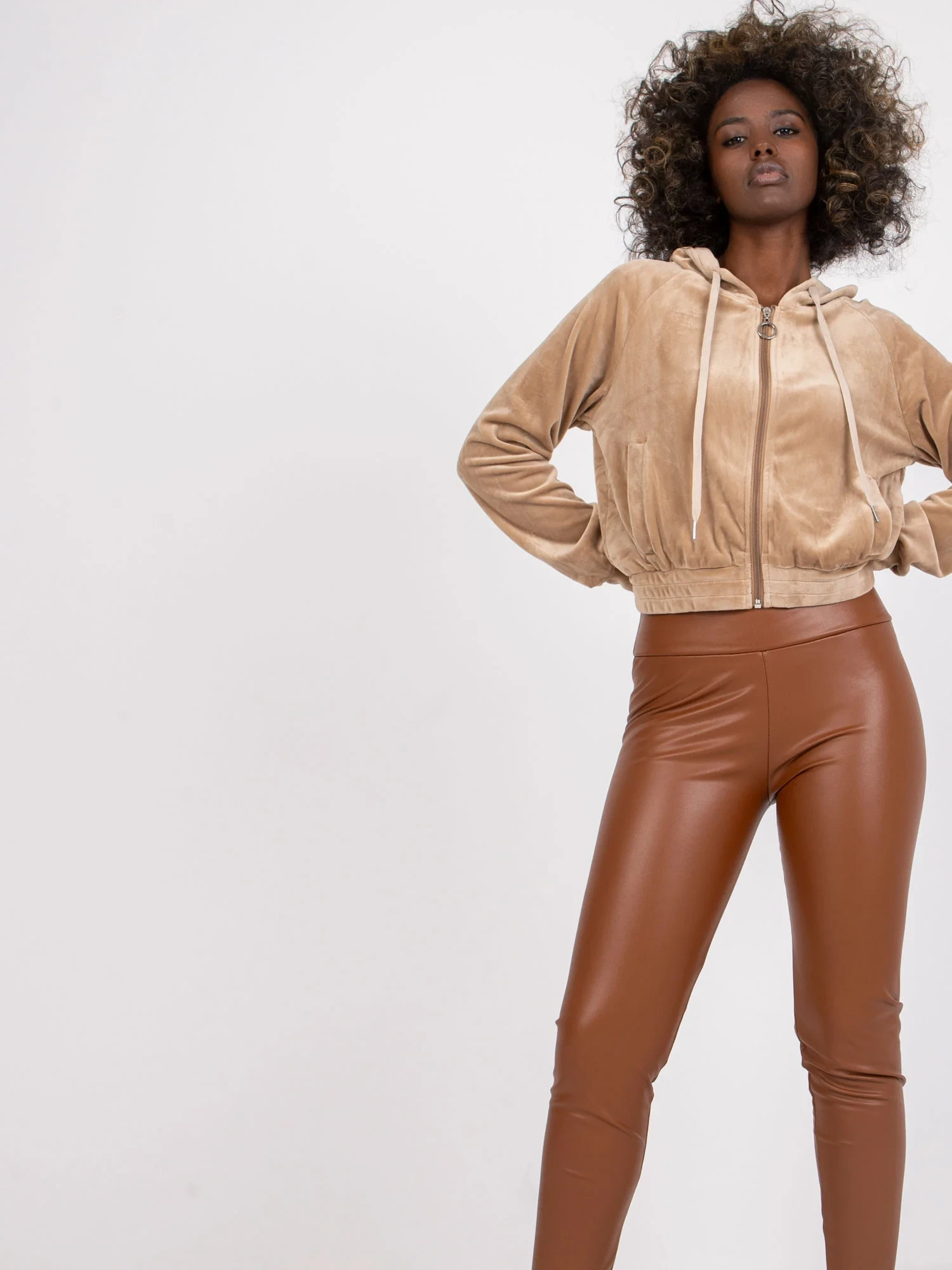 Modelka má na sobě velikost S. Rozměry modelky: výška 168 cm, prsa 82 cm, pas 62 cm, boky 93 cm.