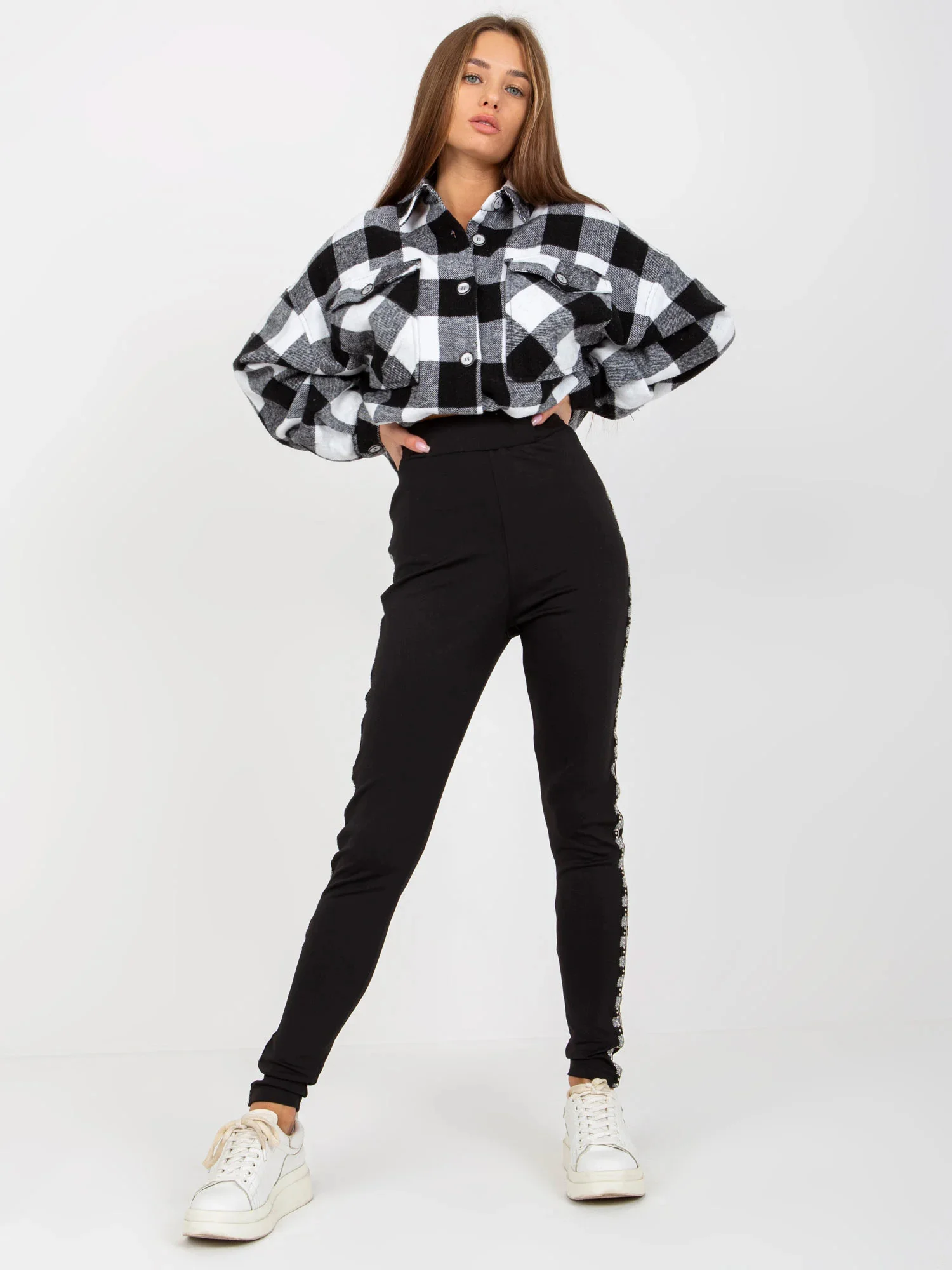 Modelka má na sobě velikost S/M. Rozměry modelky: výška 163 cm, poprsí 86 cm, pas 56 cm, boky 88 cm.