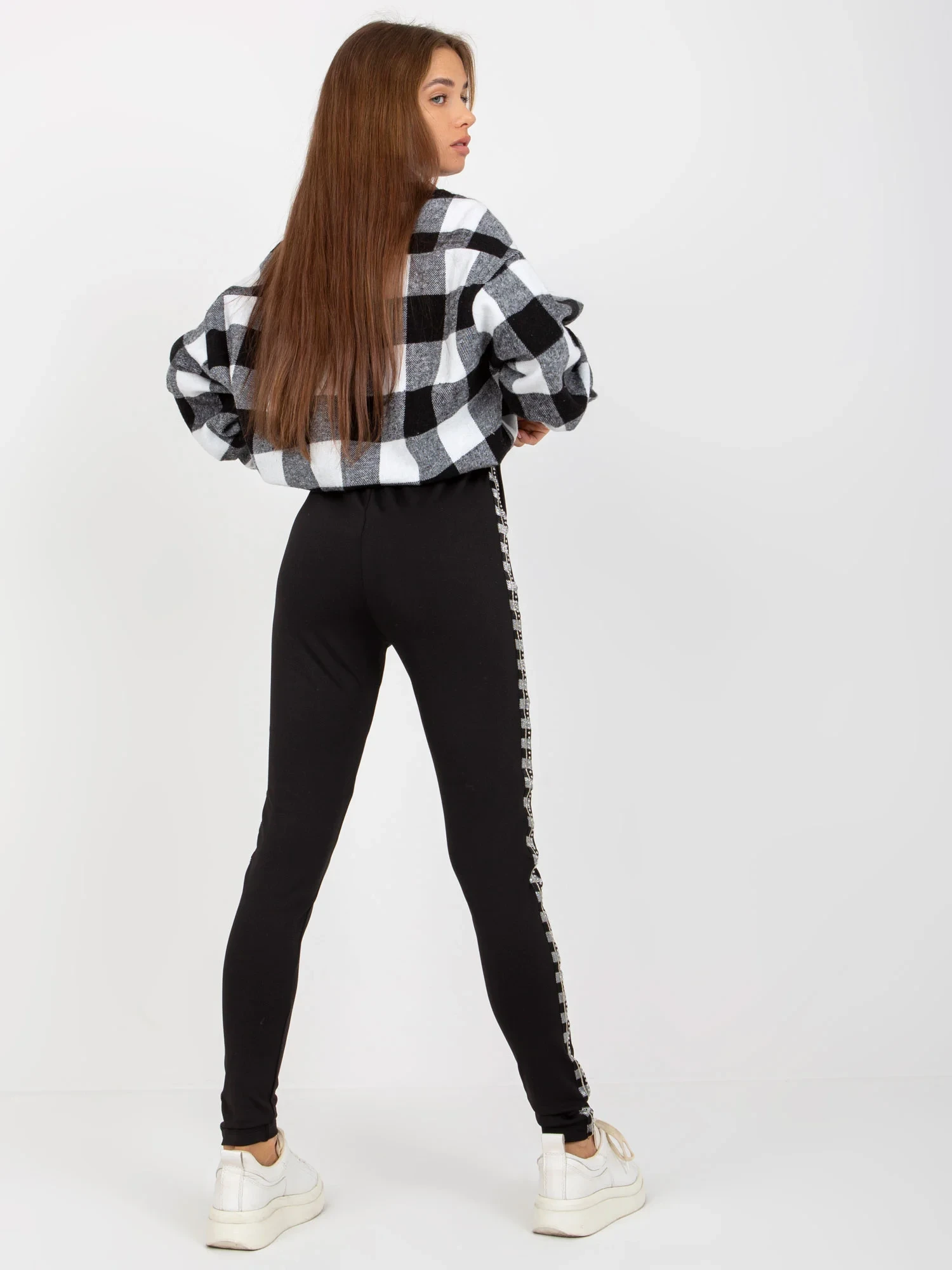 Rozměry legín ve velikosti S/M měřené na plocho: šířka v pase - 33 cm, výška v pase - 33 cm, celková délka - 103 cm.
