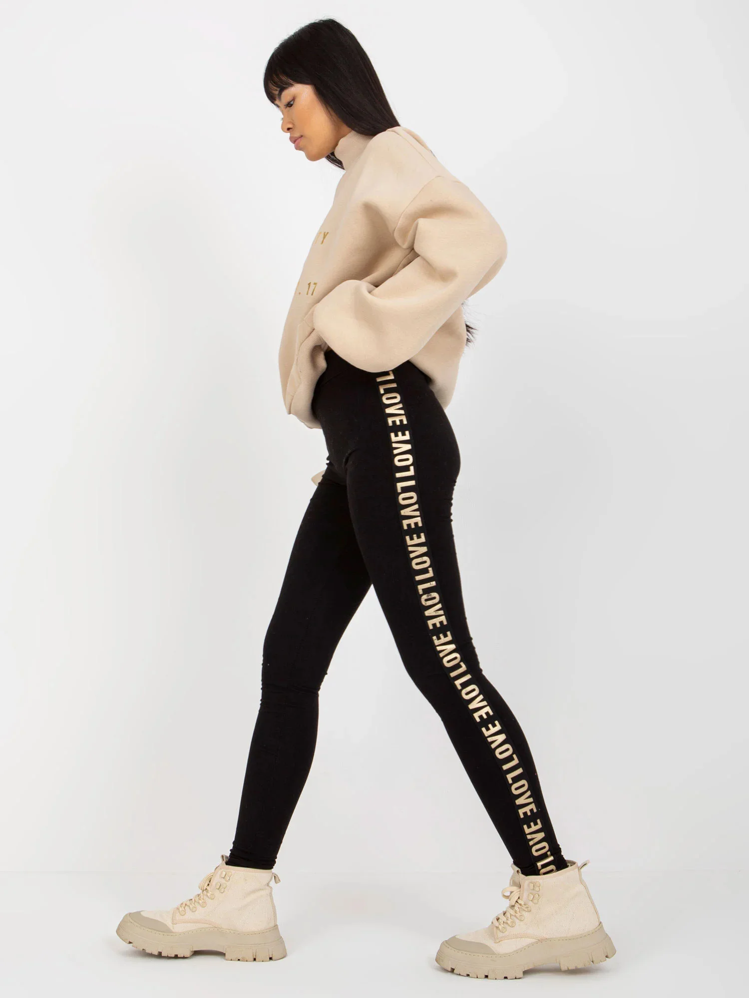 Rozměry legín ve velikosti M měřené na plocho: šířka v pase - 34 cm, výška v pase - 26 cm, celková délka - 100 cm.