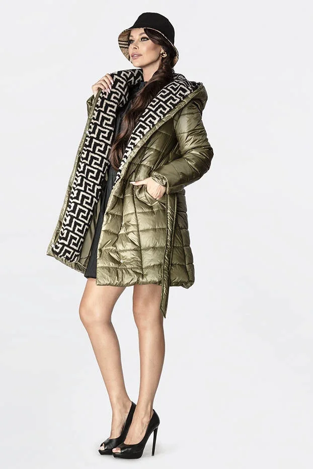 Lehká dámská zimní bunda v khaki barvě se zateplenou kapucí (omdl-019)