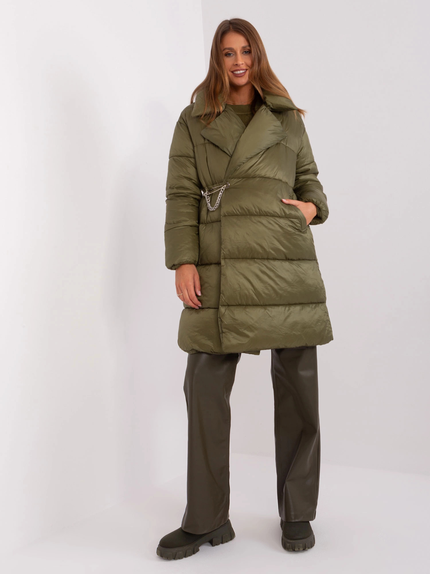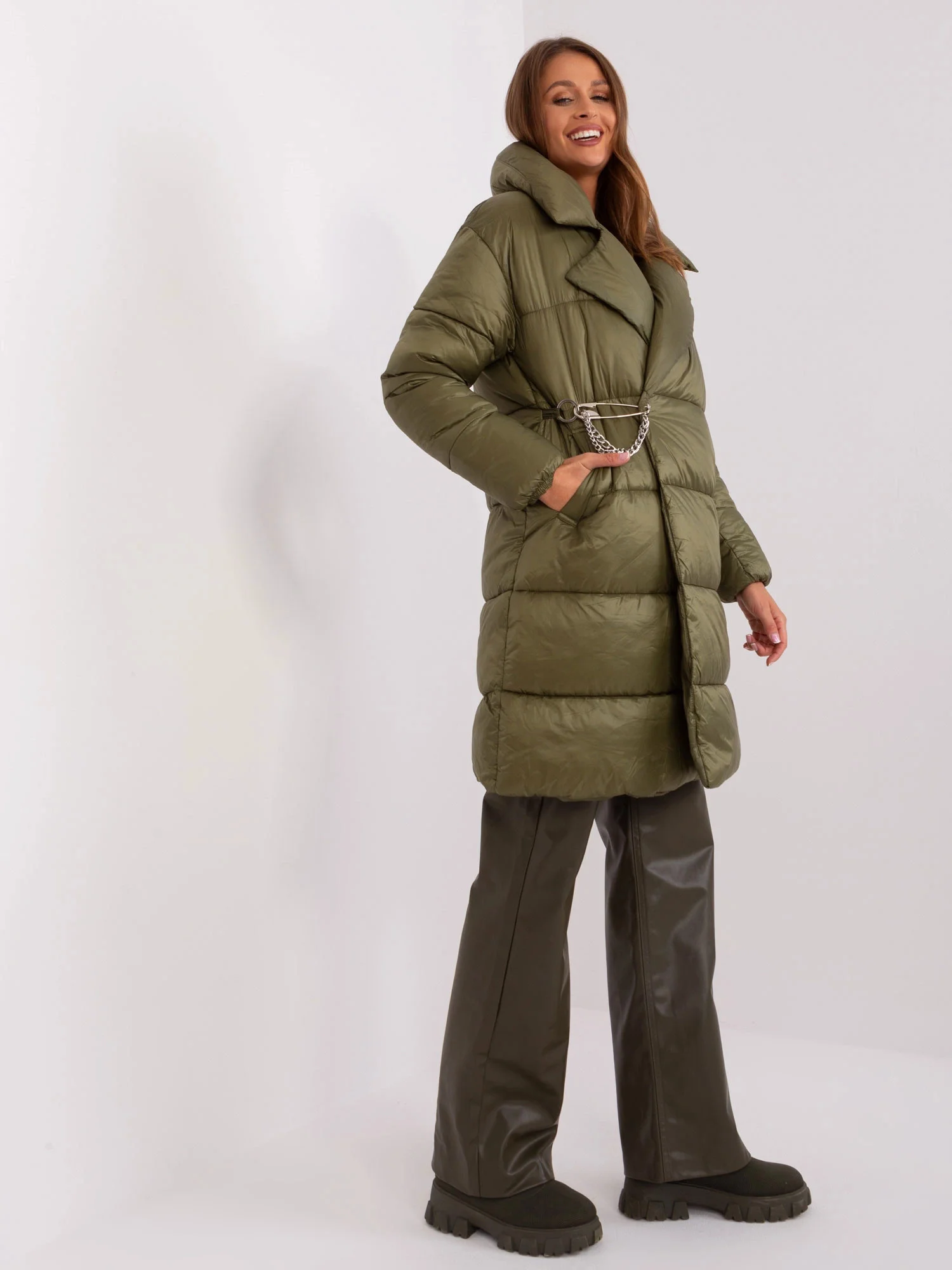 Lehká péřová dámská zimní bunda khaki barvě Factory Price (TR8310)