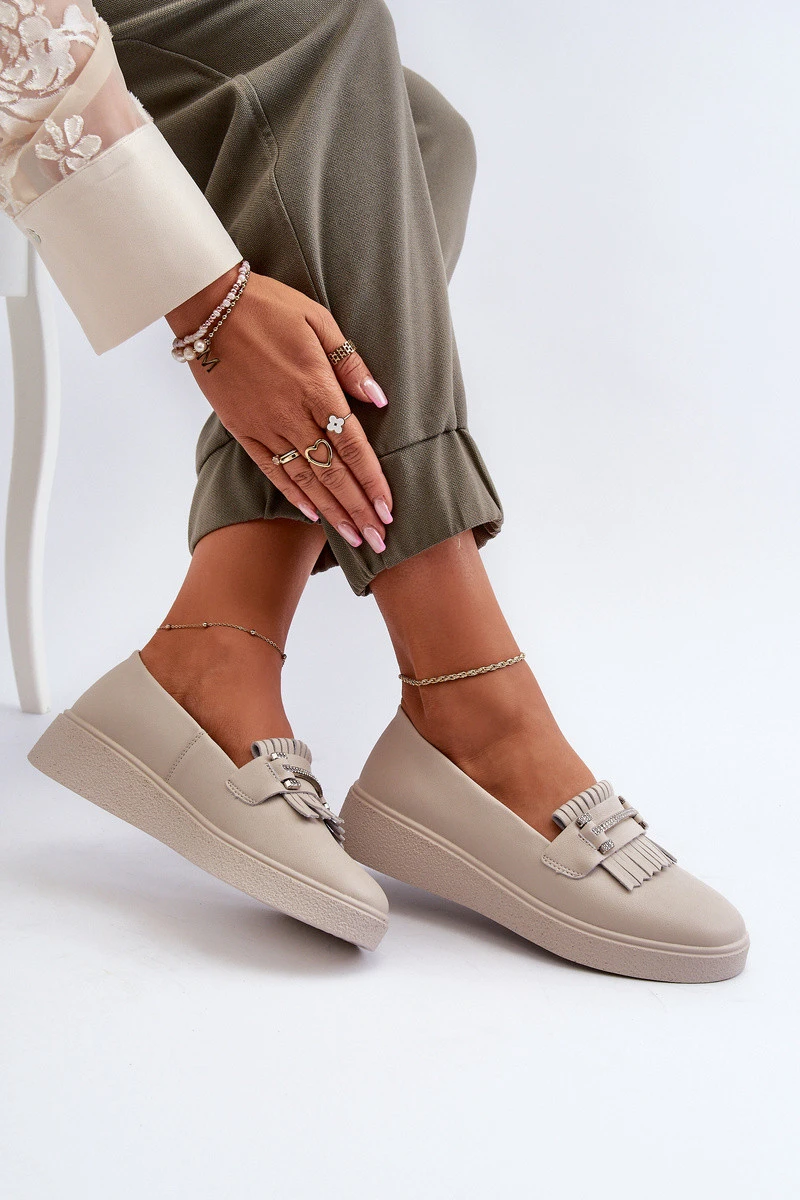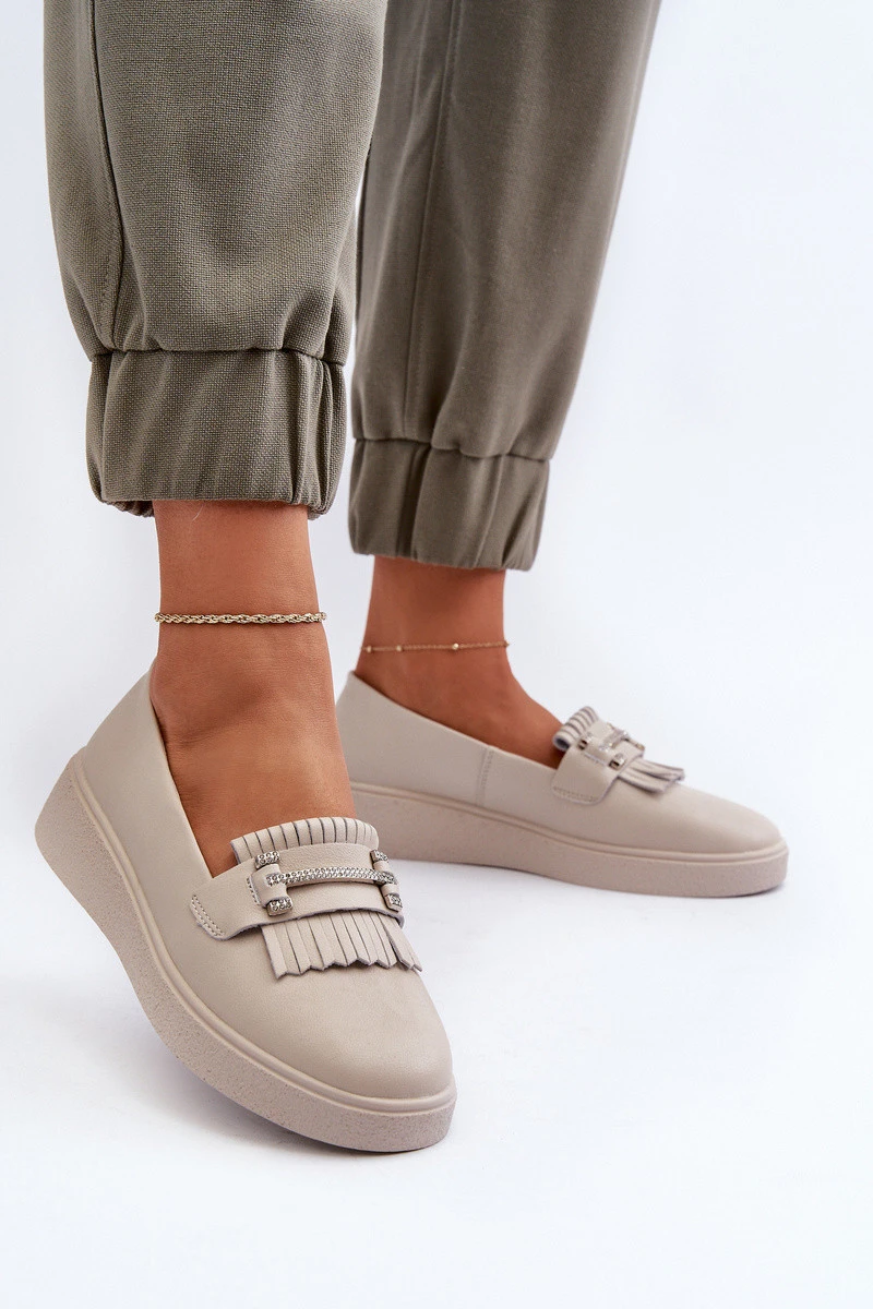 Lehké Dámské Mokasíny Kožené Na Platformě Beige model 21655865 - S.Barski