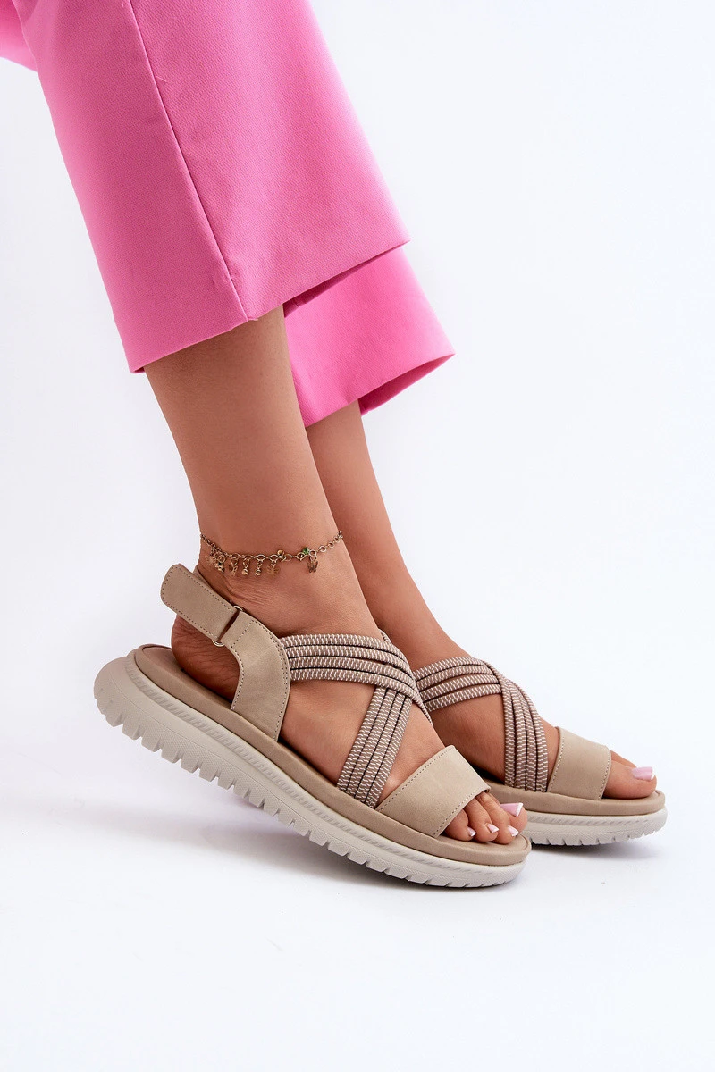 Lehké Dámské Pohodlné Sandály Na Suchý Zip Beige Ceclea