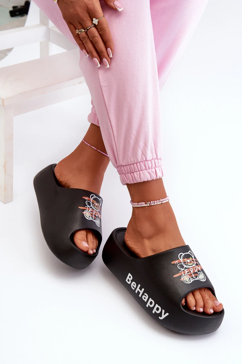 Lehké Dámské Žabky na Hrubé Podrážce s Medvídkem Pianové Černé Serefina