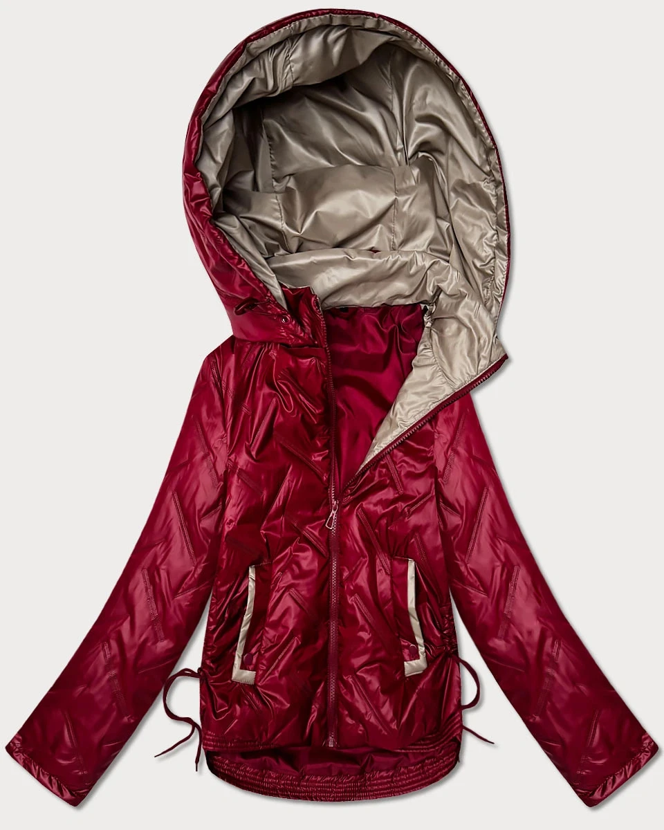 Lekko ocieplana krótka kurtka damska z kapturem Goodlookin ciemny czerwony (B8595-27)