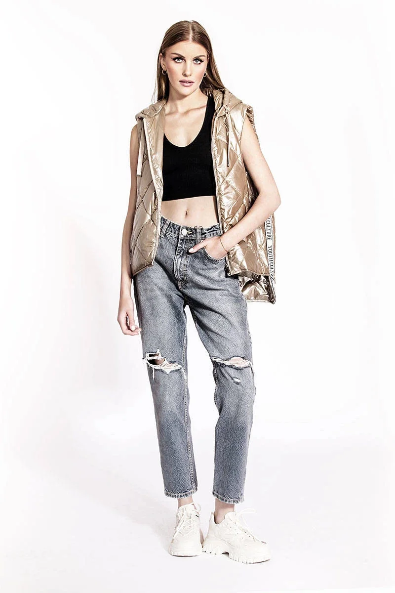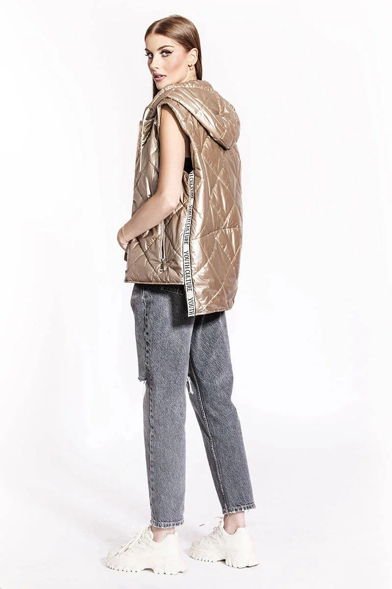 Lesklá béžová dámská vesta model 17044005 - Ann Gissy