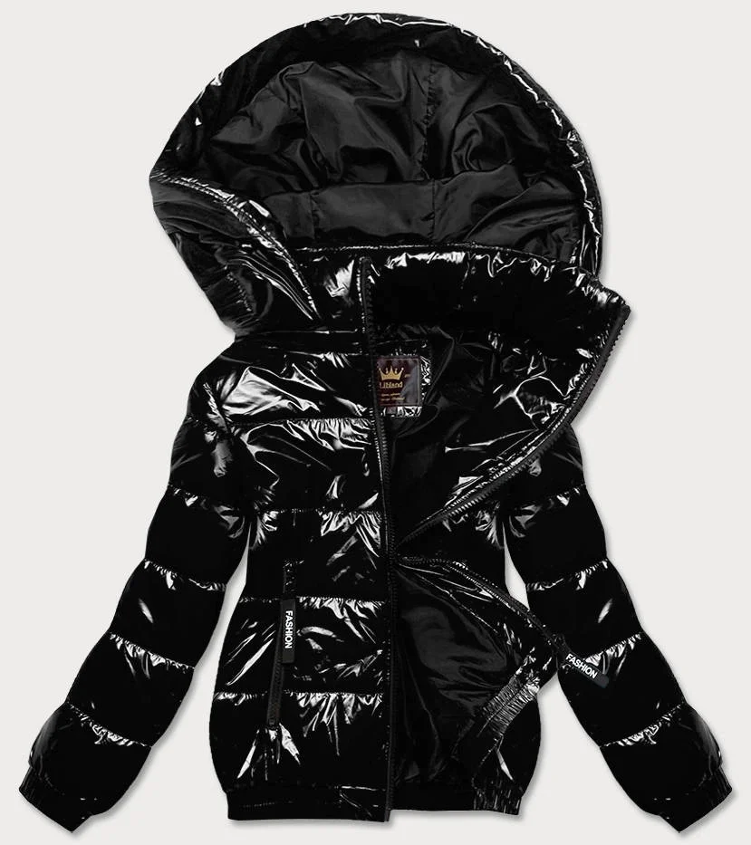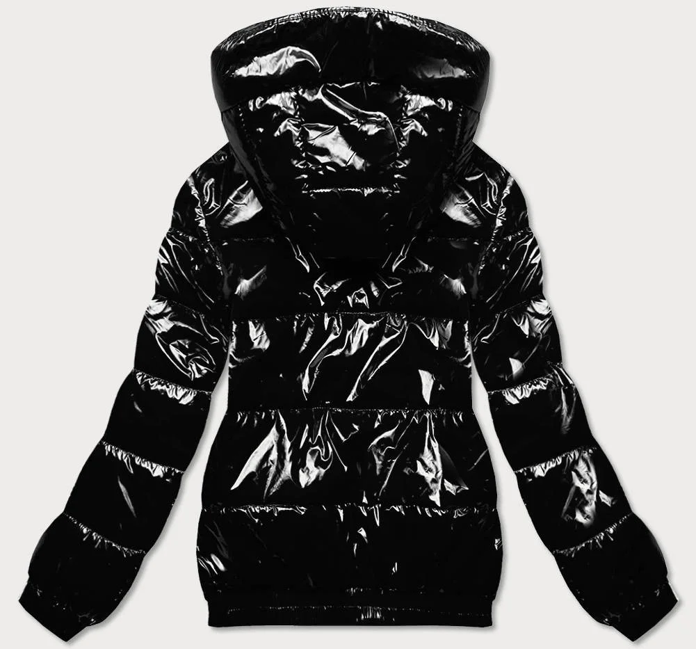 Lesklá černá dámská bunda se stahovacím lemem (LD7250BIG)