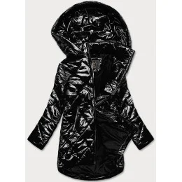 Lesklá černá prošívaná dámská bunda (LD7259BIG)