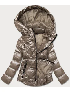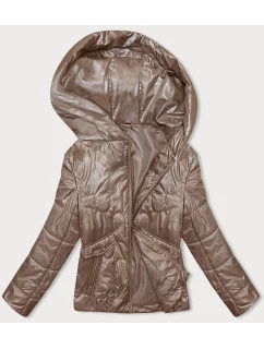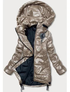 Lesklá dámská oversize bunda v barvě kapučíno (2021-06)