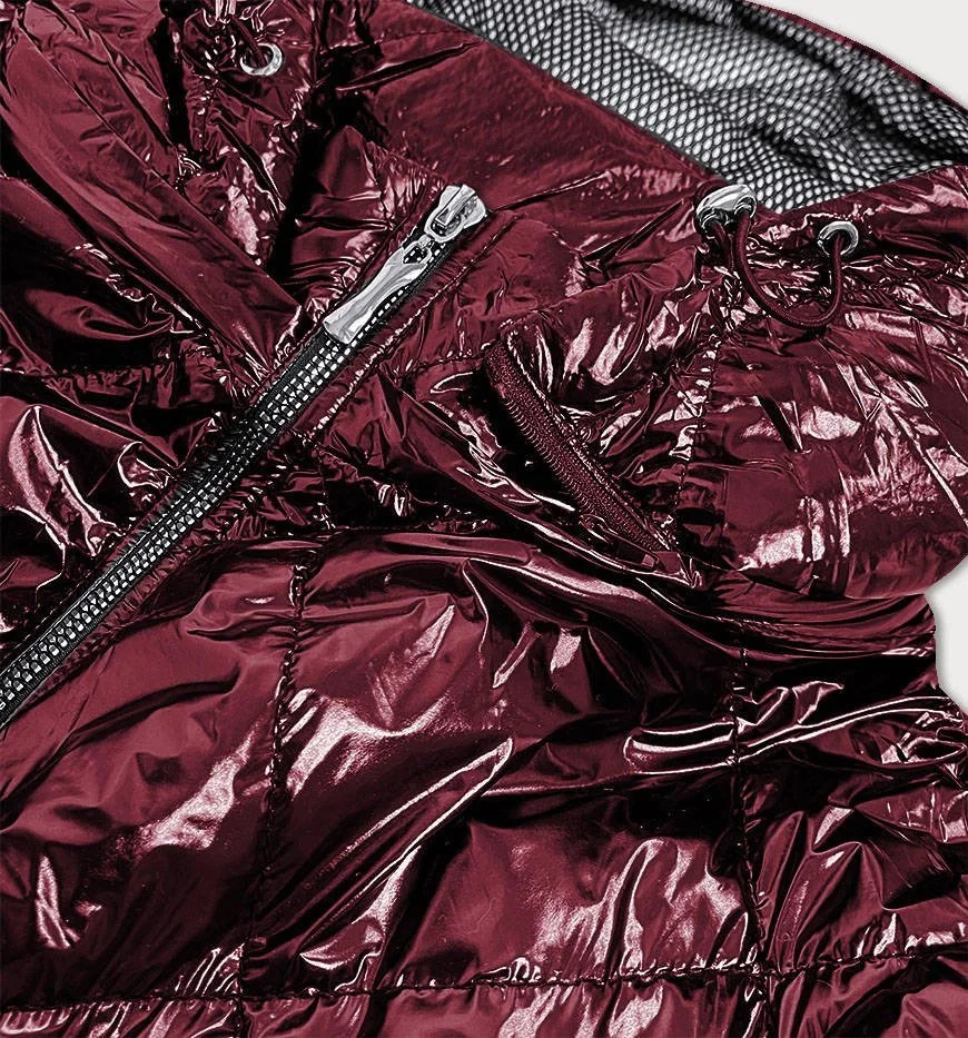Lesklá prošívaná dámská bunda v bordó barvě (B9573)