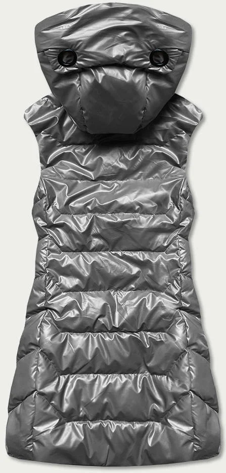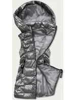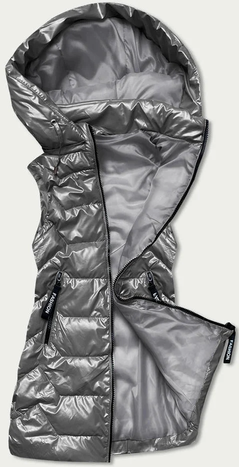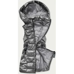 Lesklá šedá dámská vesta s kapucí (B8019-70)