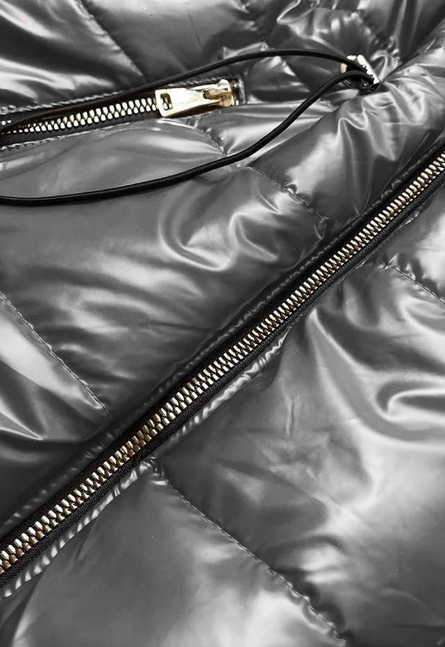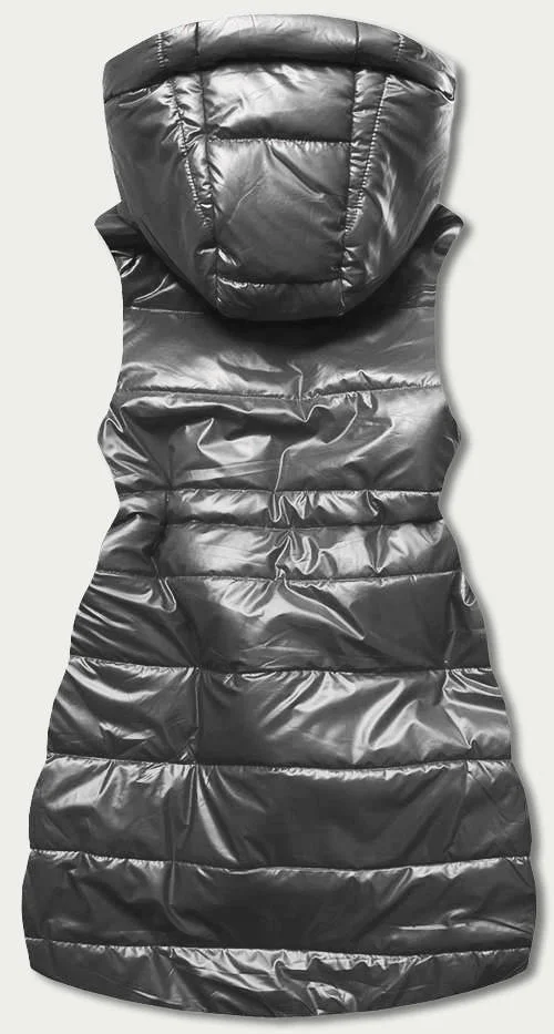 Lesklá vesta v grafitové barvě s kapucí (B8130-70)