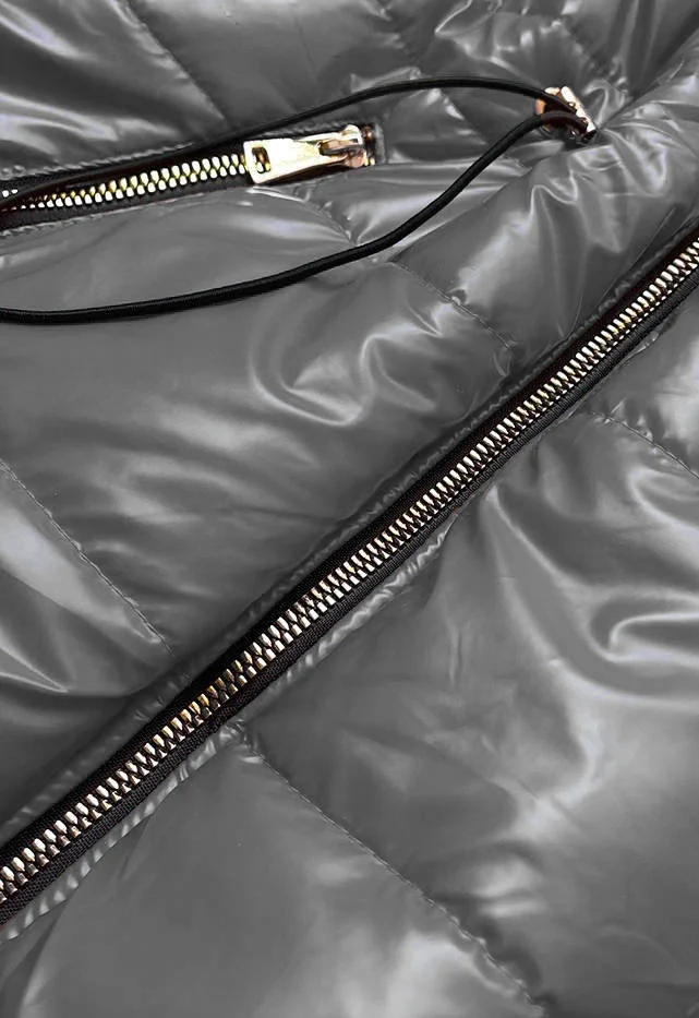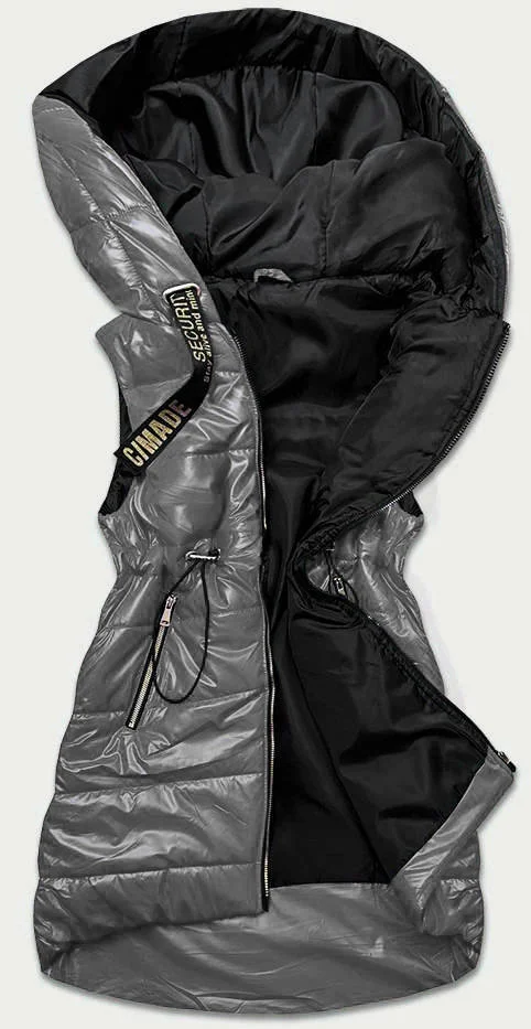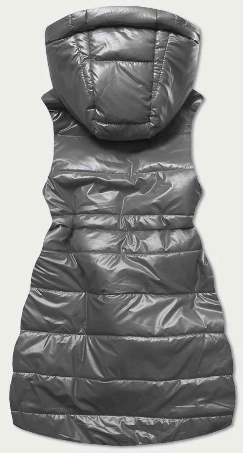 Lesklá vesta v grafitové barvě s kapucí (B9783-70)