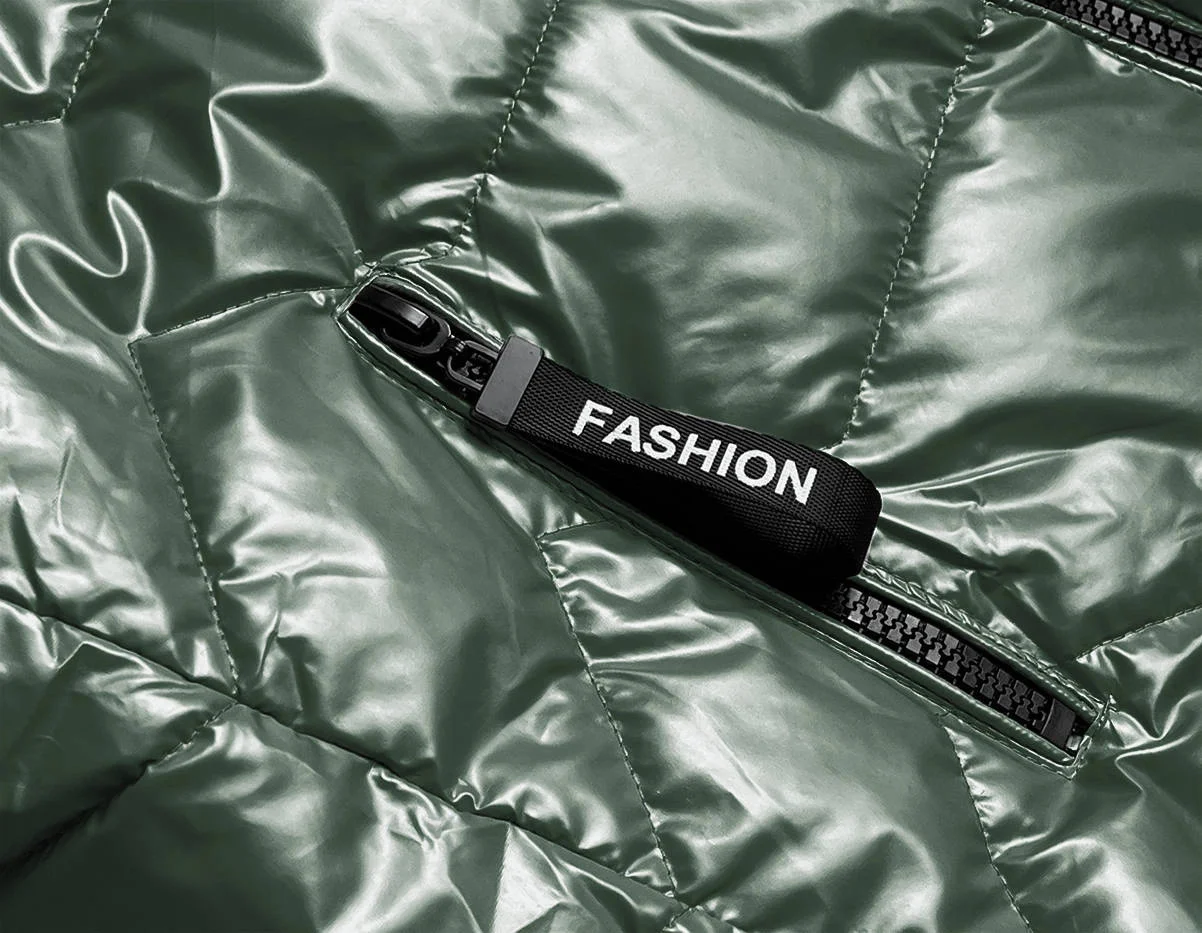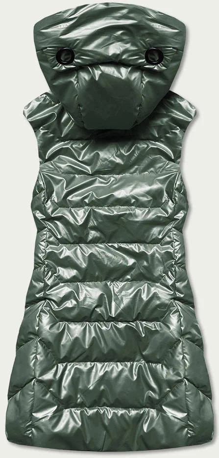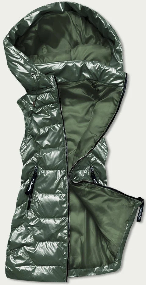 Lesklá zelená dámská vesta s kapucí model 17249734 - S'WEST