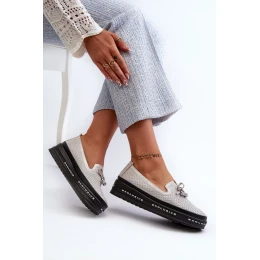 Lesklé dámské kožené mokasíny na platformě S.Barski Silver