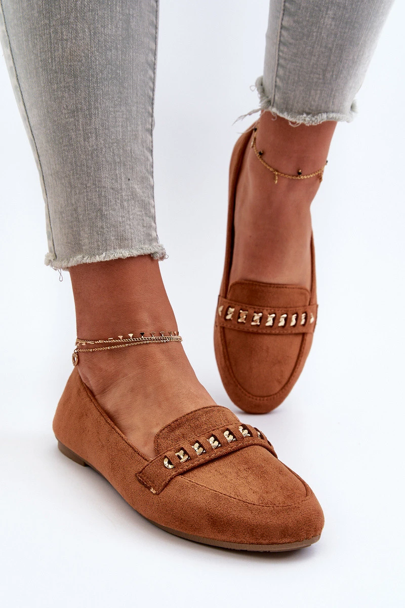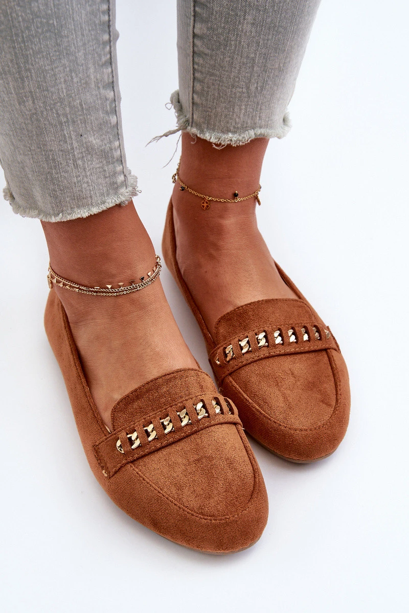 Dámské mokasíny z ekologického semiše. Ozdobené lesklým nití a páskem s řetízkem. Tento model je skvělou volbou pro každou stylovou ženu. Měkká stélka zajistí pohodlí po celý den. Tyto mokasíny budou skvělým doplňkem letního šatníku, který dodá každému outfitu jedinečný šarm a eleganci. Při výběru velikosti se řiďte tabulkou velikostí.